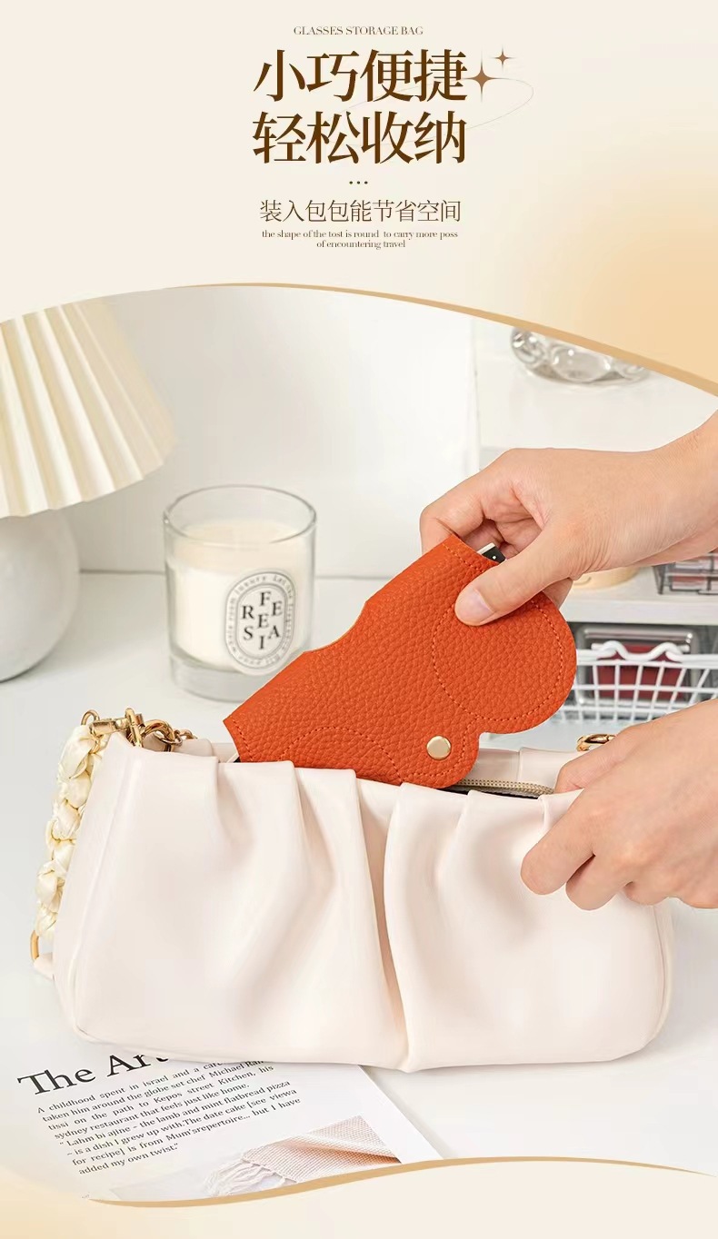 Nueva bolsa de gafas de sol pu portátil caja de gafas de sol cubierta de gafas lindas clips de gafas de mujer simple bolsa de gafas