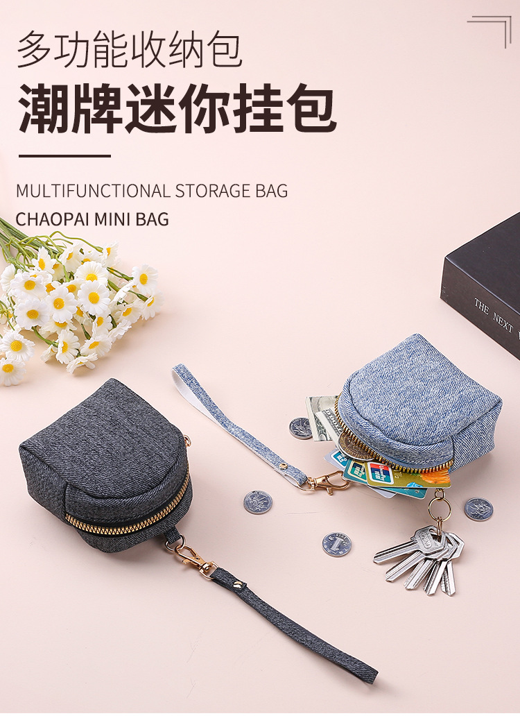 Bolsa de llaves transfronterizas mini bolso de cambio bolso de almacenamiento de auriculares bolso de llaves pareja bolso colgante bolso de vaquero