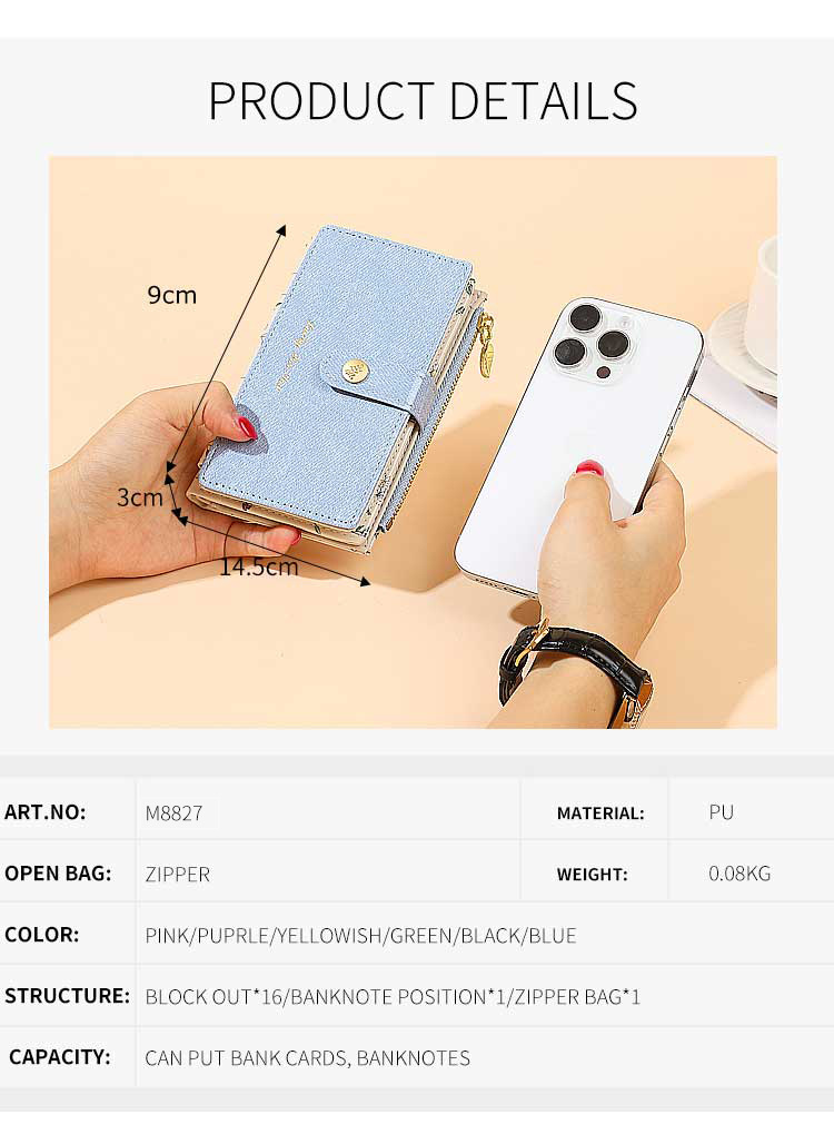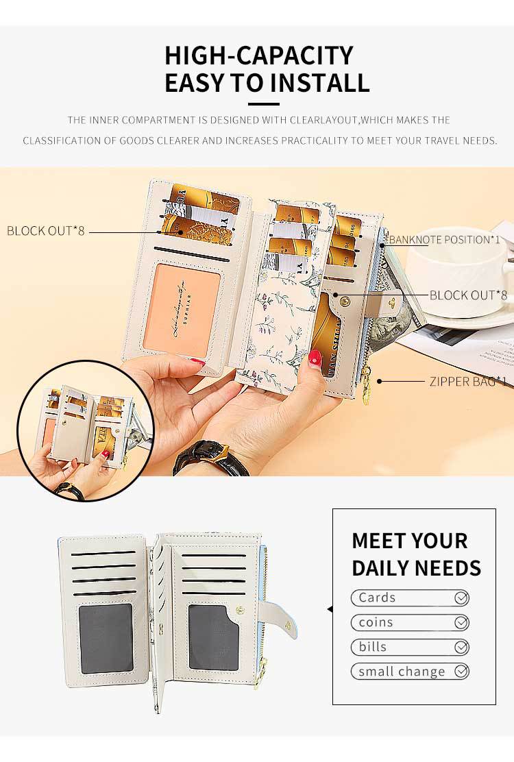 Promoción de tres capas de cremallera bolsa de cambio pu multi tarjeta bolsa de tarjeta en una gran capacidad de billetera larga personalizada