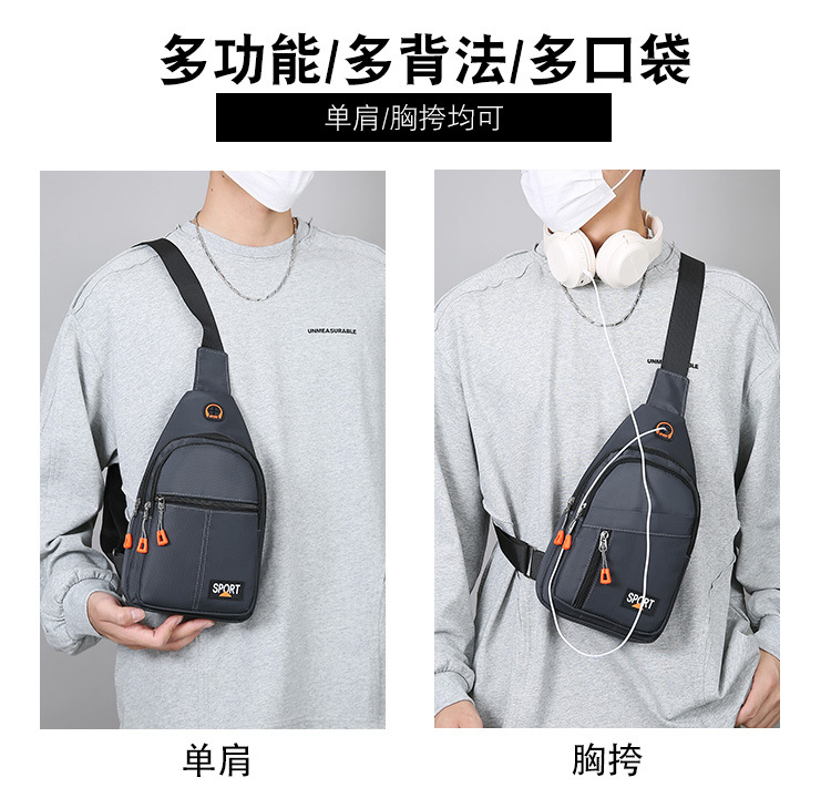 Bolsa de hombro simple ocio de gran capacidad, agujero de auriculares de almacenamiento multicapa, bolso de pecho portátil, bolso de transporte deportivo al aire libre