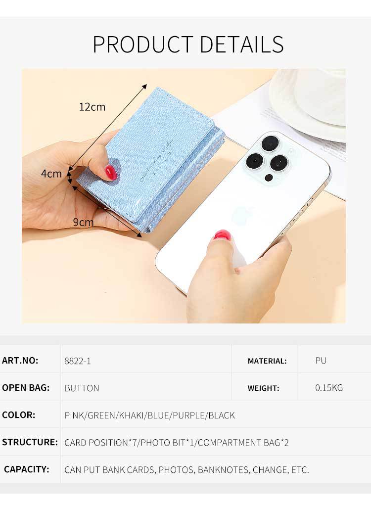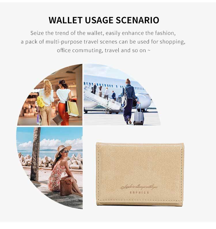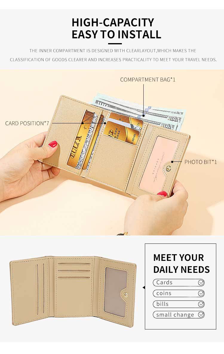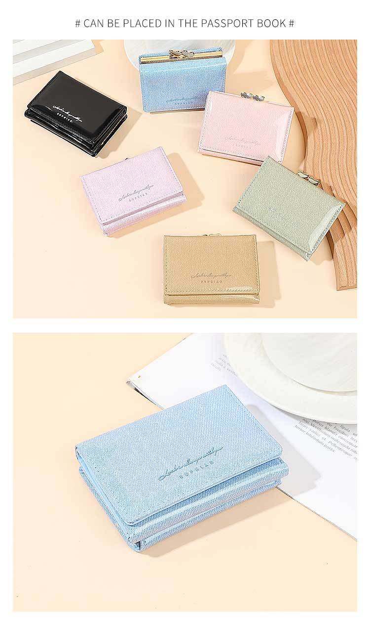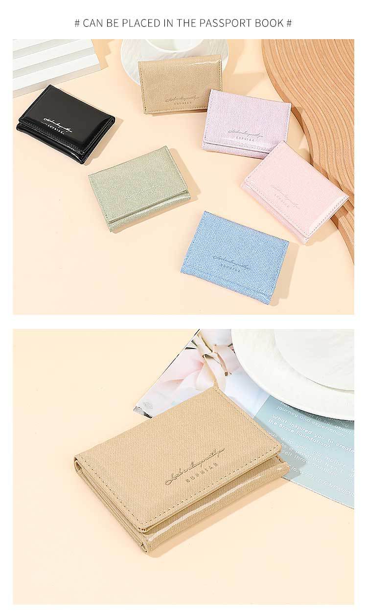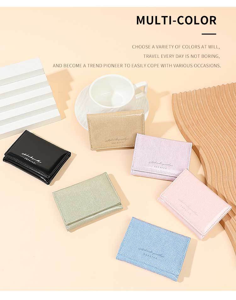 Promoción de la billetera de cuero PU alumno ultra delgado pequeña billetera de tres pliegues de viaje diario simple billetera de mujer personalizada