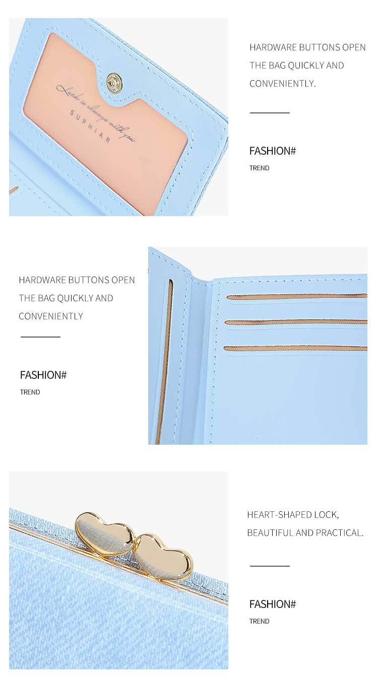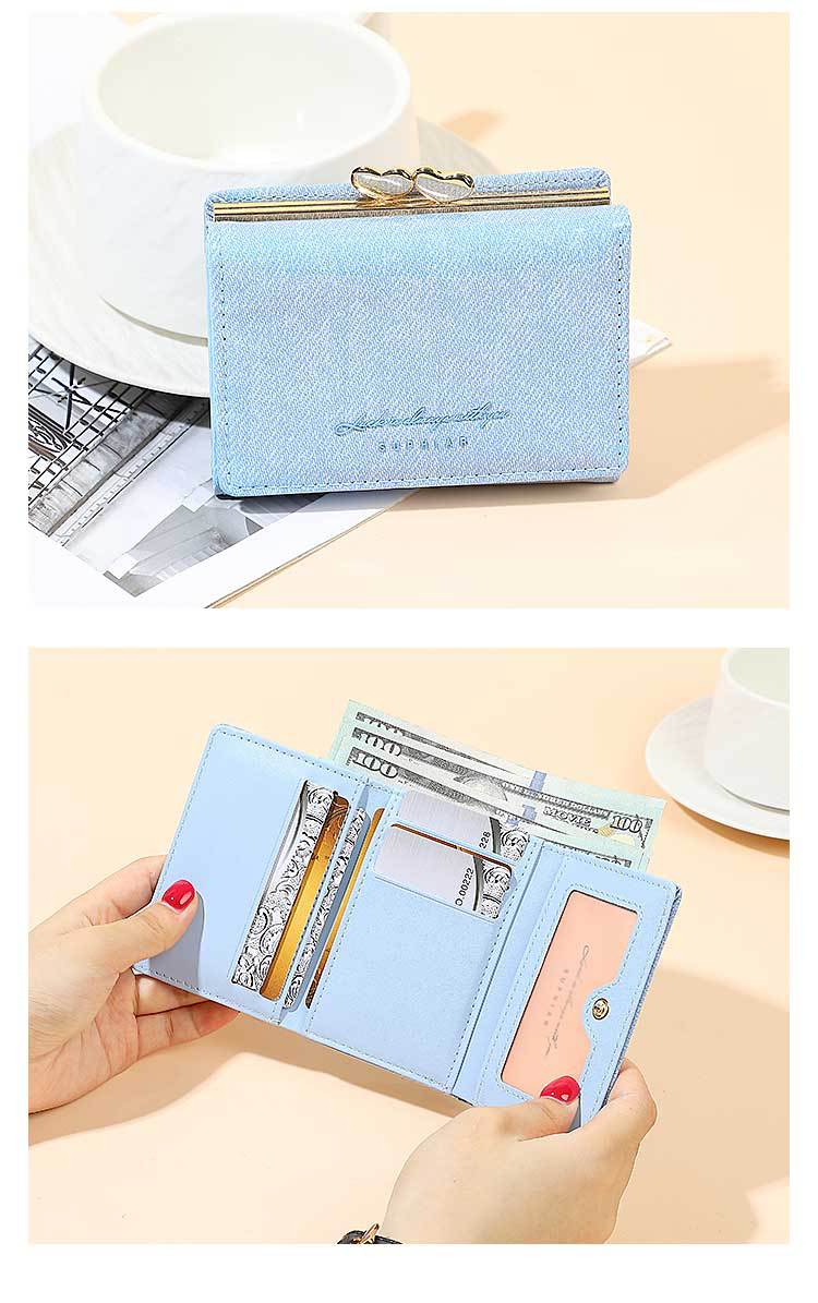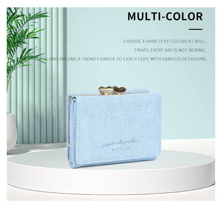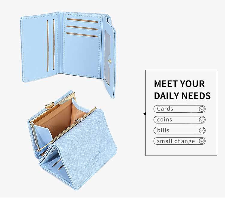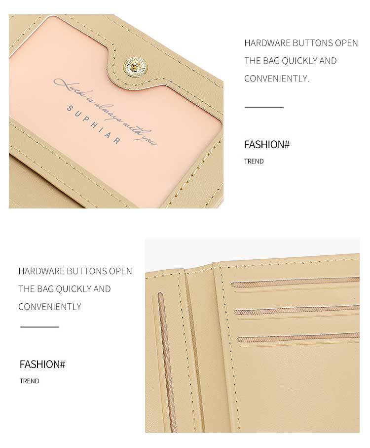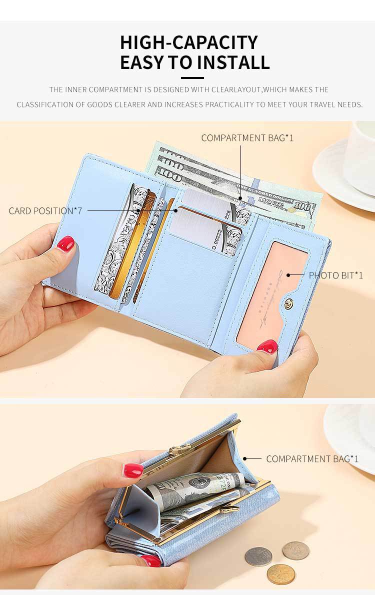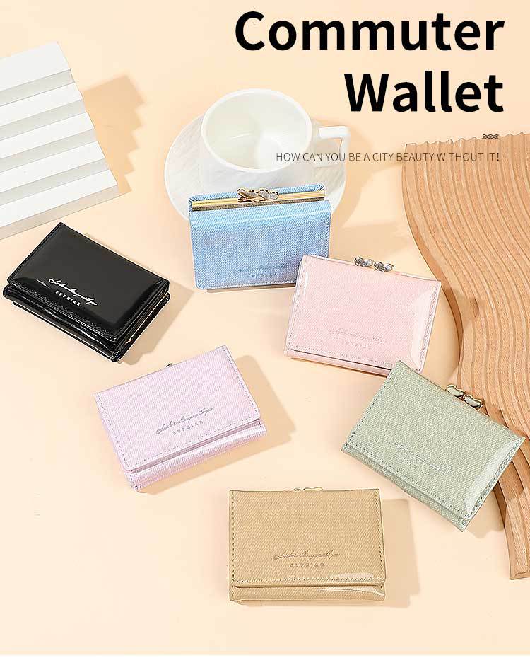 Promoción de la billetera de cuero PU alumno ultra delgado pequeña billetera de tres pliegues de viaje diario simple billetera de mujer personalizada