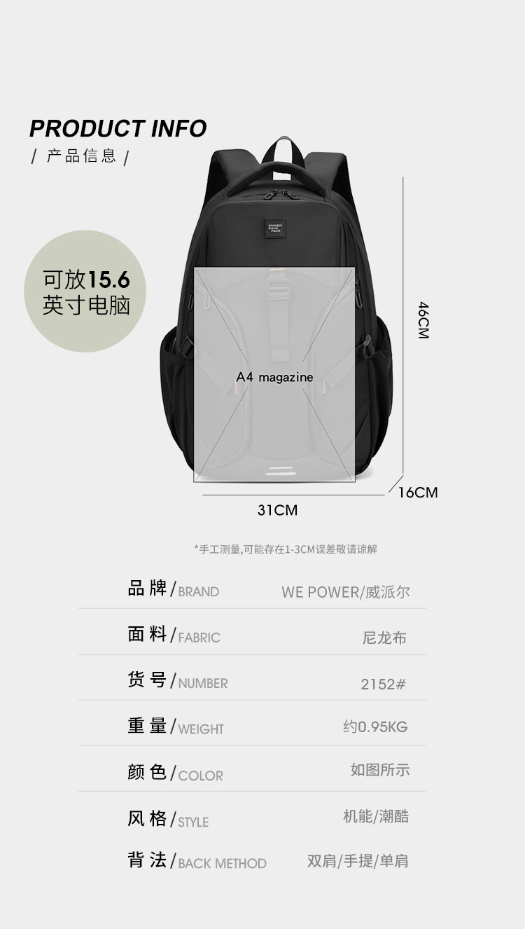 WEPOWER nuevo hombre viaje de negocios mochila multifuncional al aire libre caminata mochila de gran capacidad
