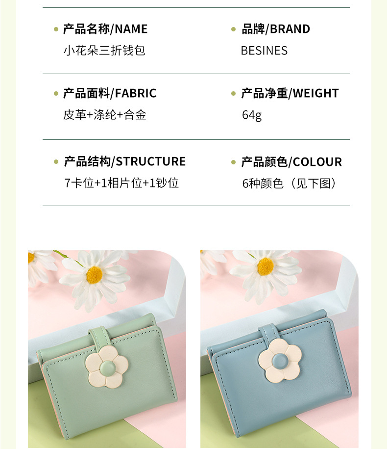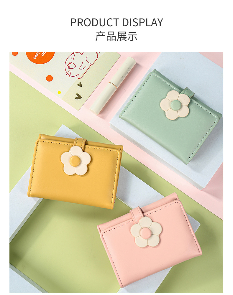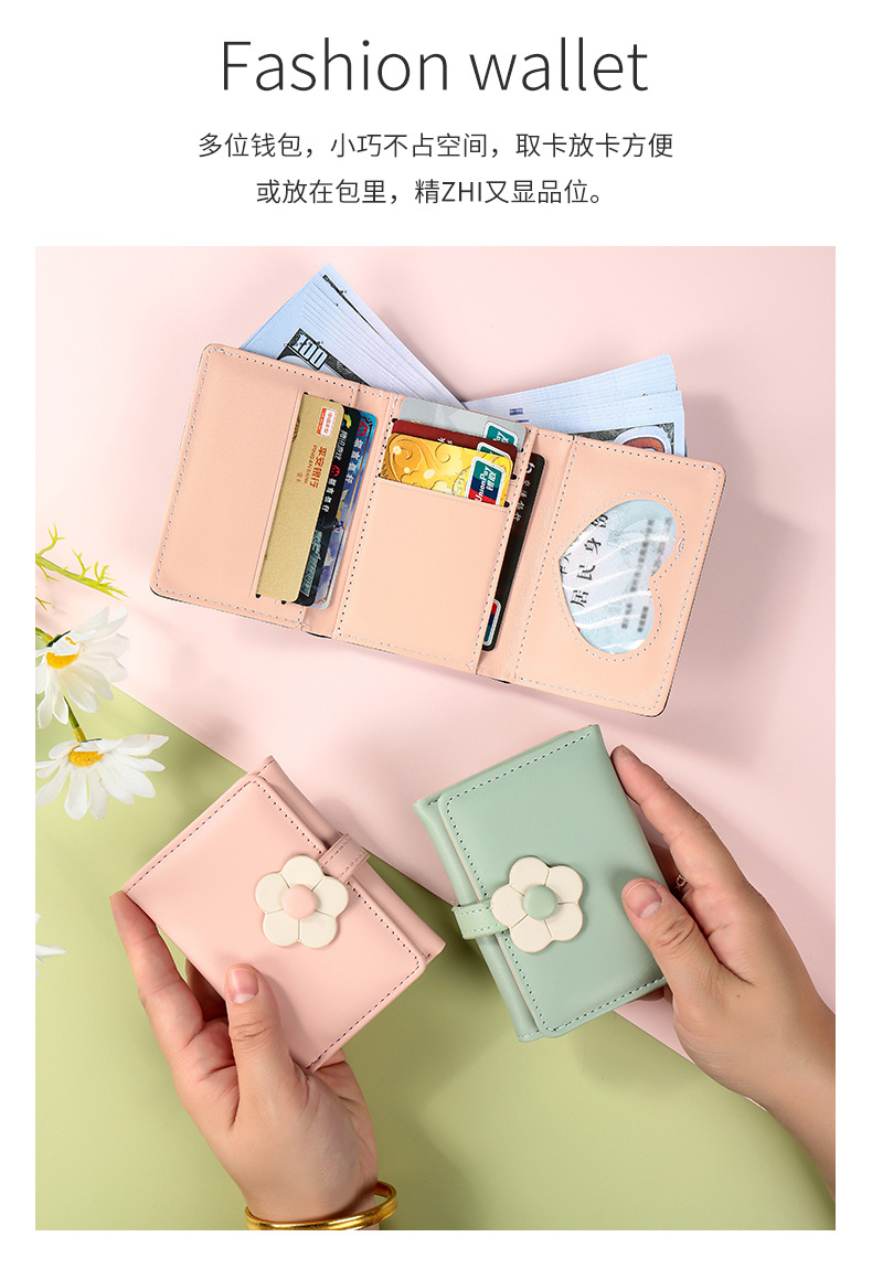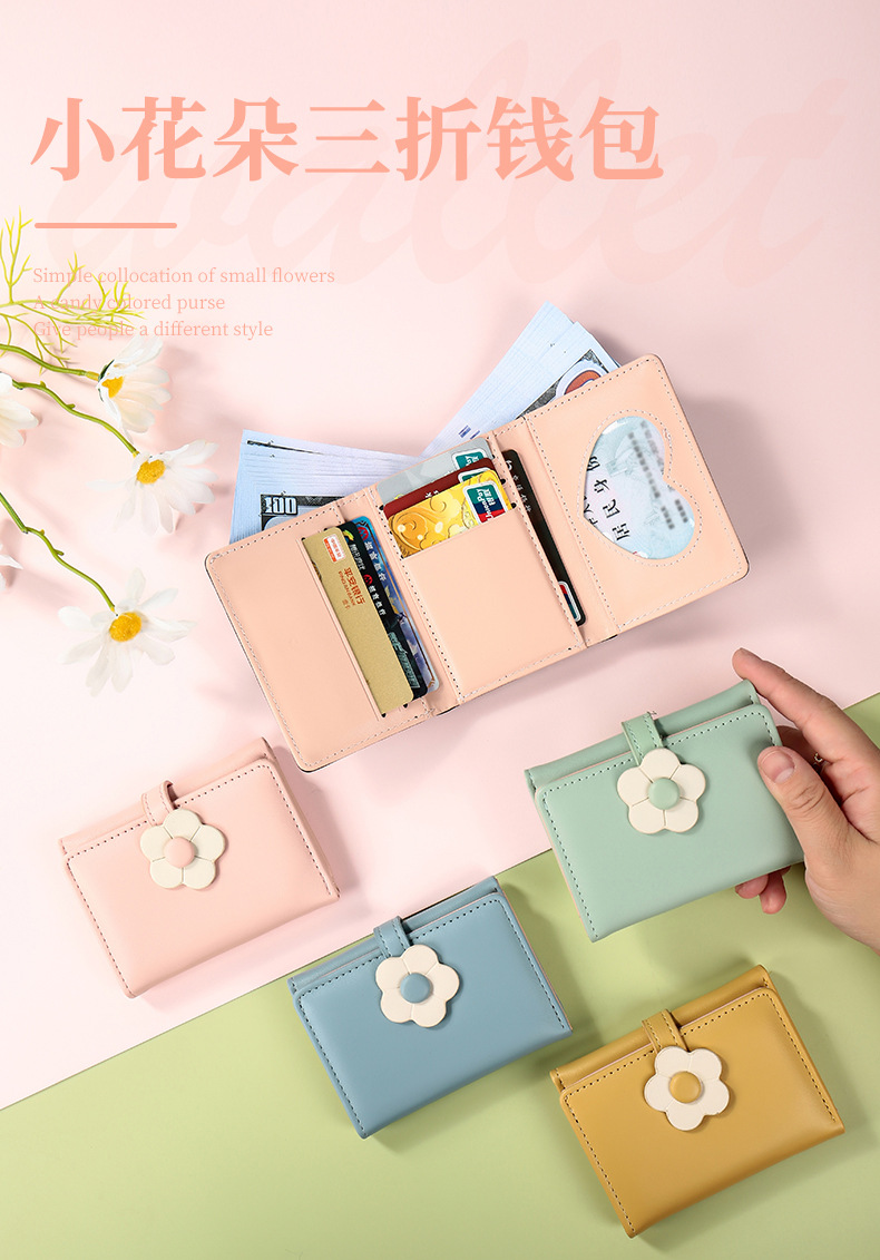 Cartera de regalo 2024, cartera corta para mujer, bonitas flores pequeñas, estilo coreano fresco, monedero para celebridades de Internet, envío directo