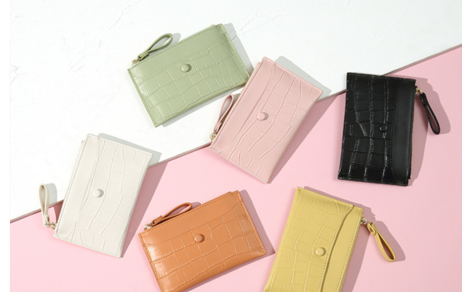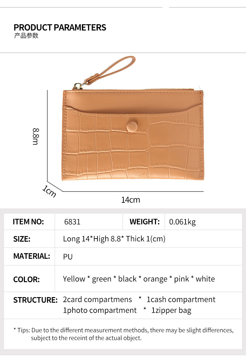 Cartera Mini bolsa de monedas con cremallera Japón y Corea del Sur Bolsa de tarjeta de pu con posición de tarjeta múltiple ultrafina de color sólido Cartera corta para mujer personalizada