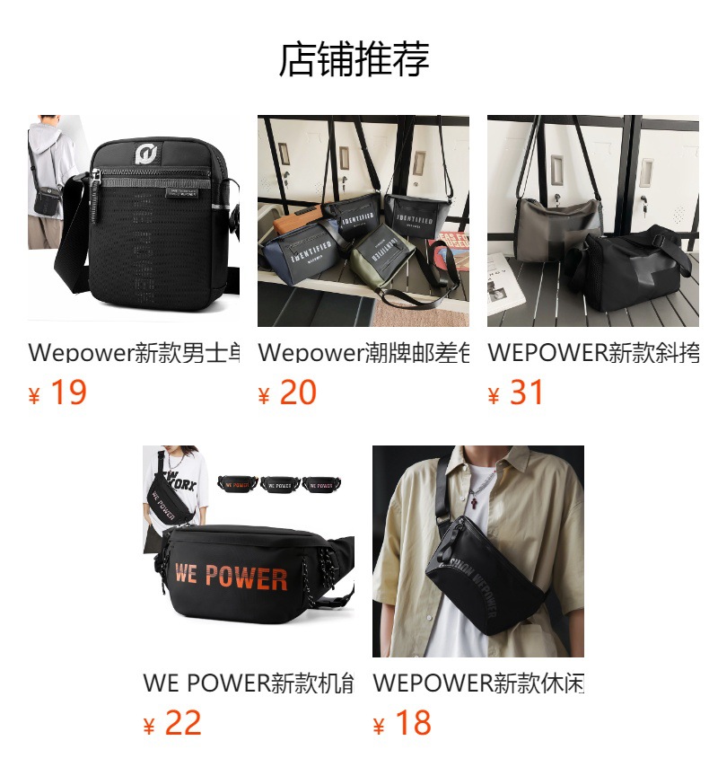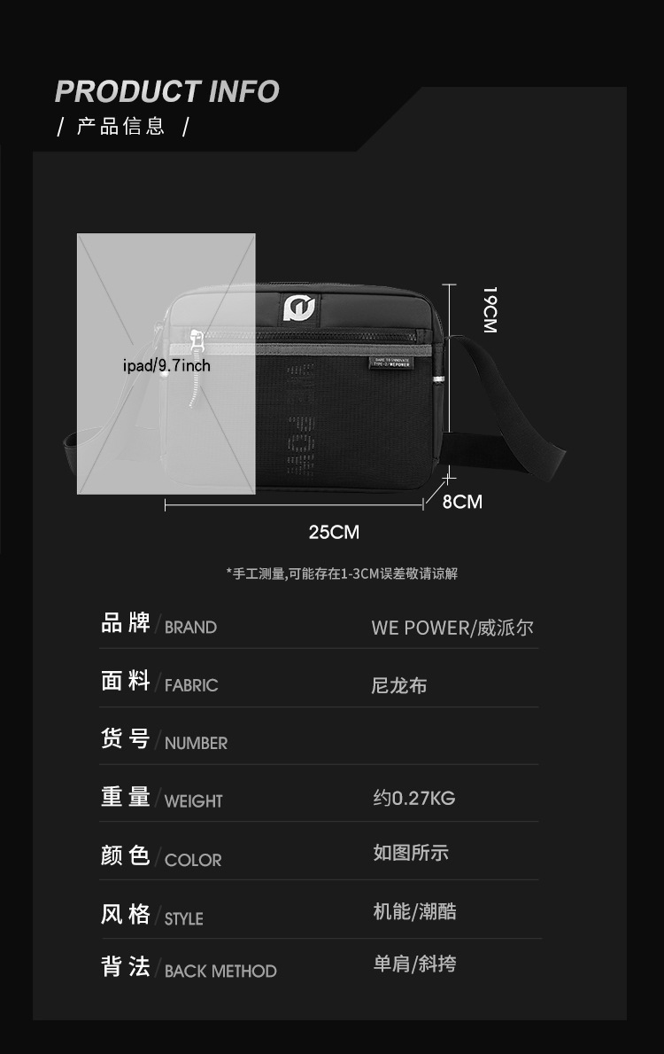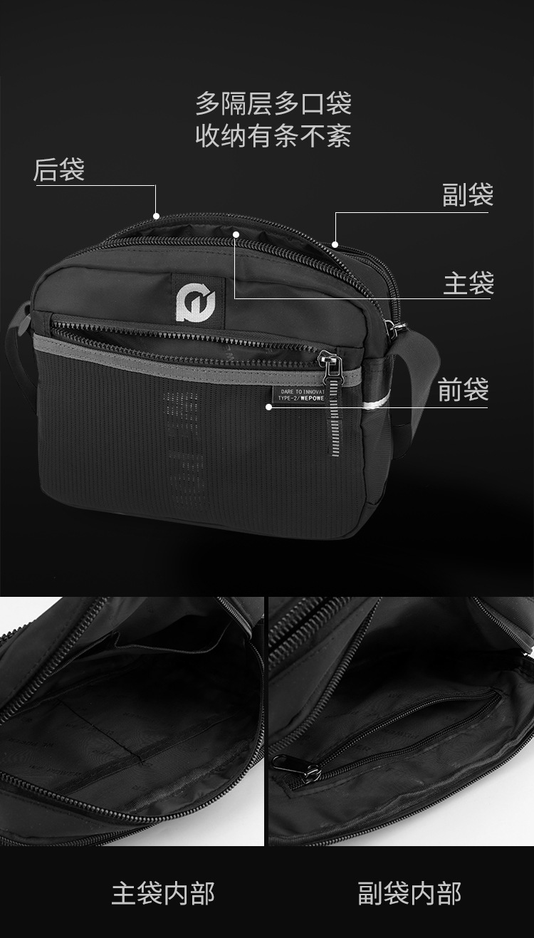WEPOWER Bolso de hombro para hombre Bolso de mensajero de nailon casual de moda Estilo horizontal Personalidad Marca de moda Bolso de hombro