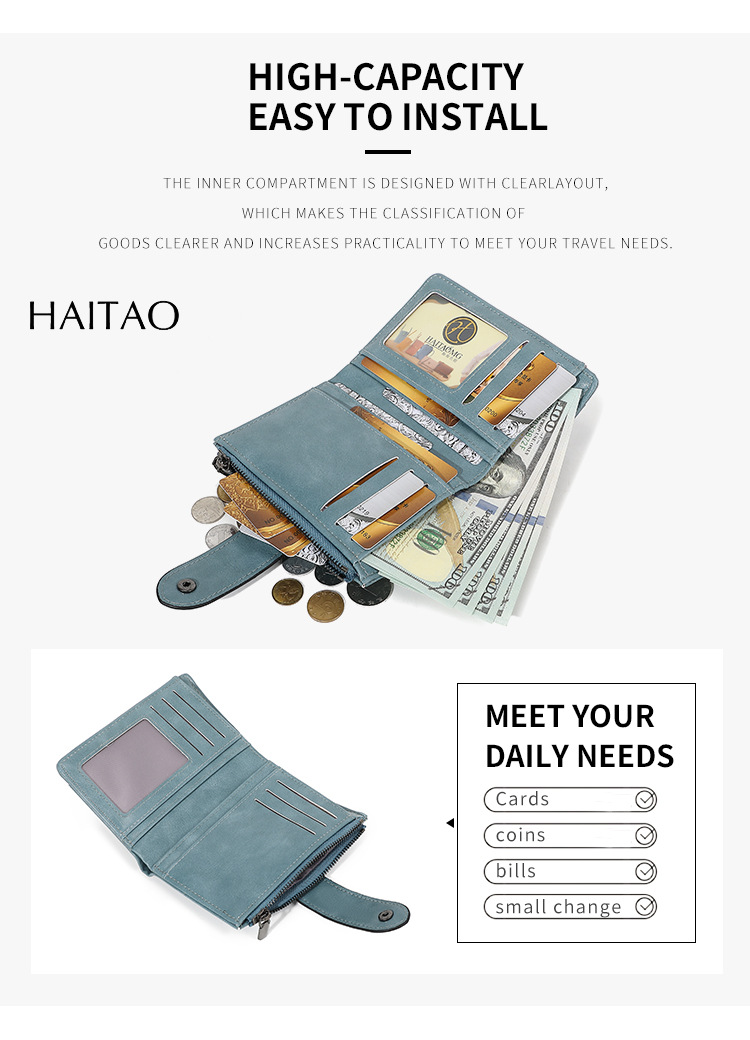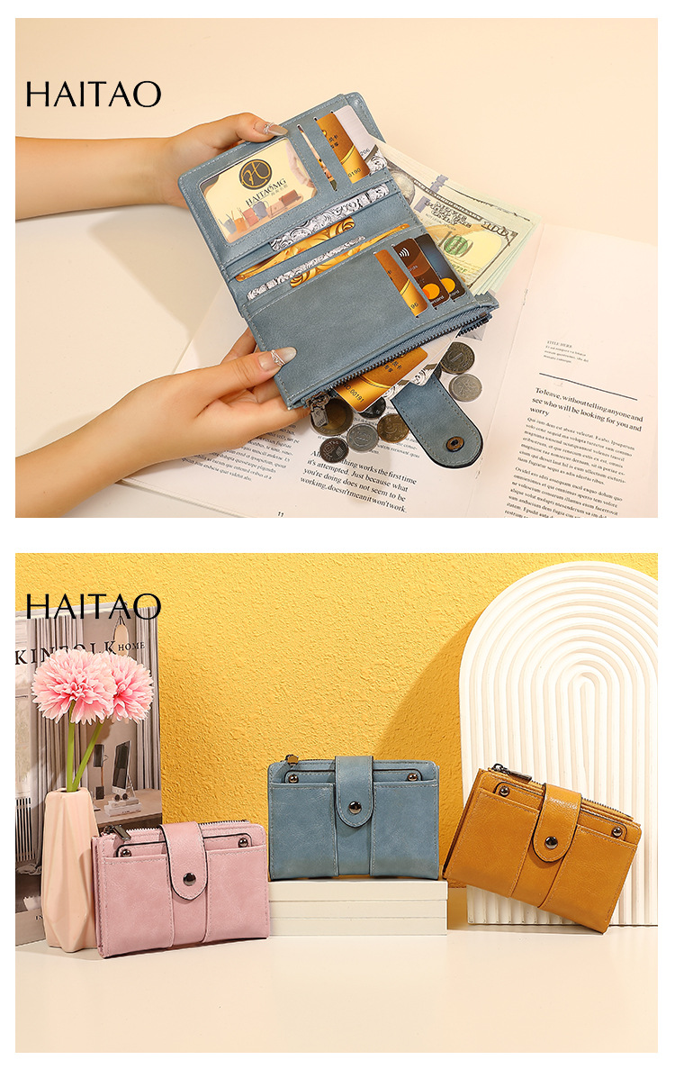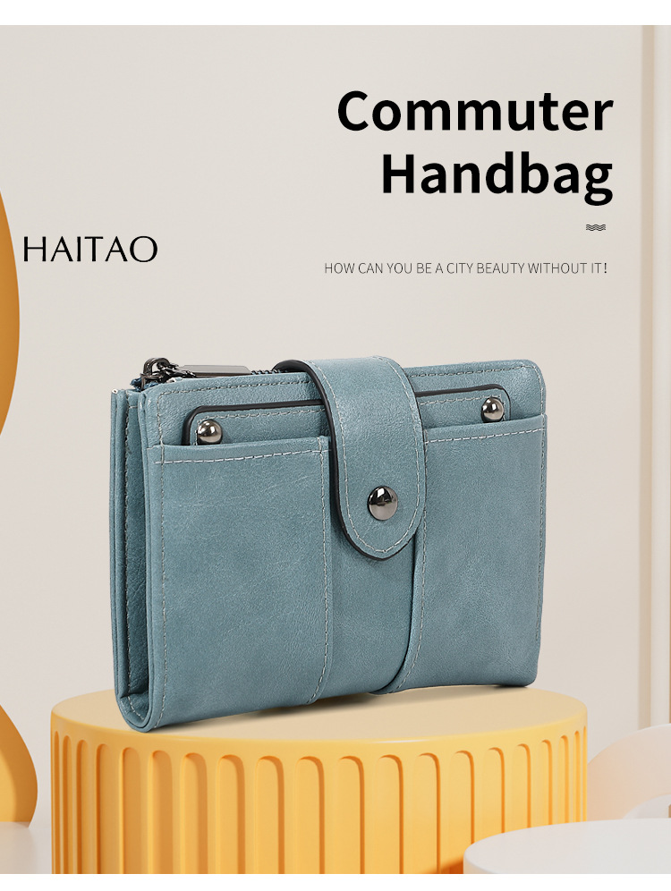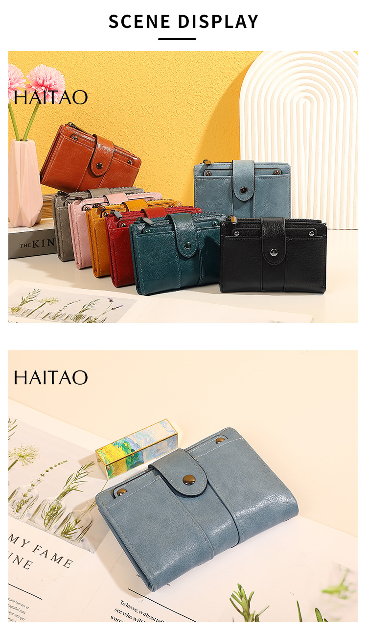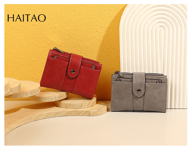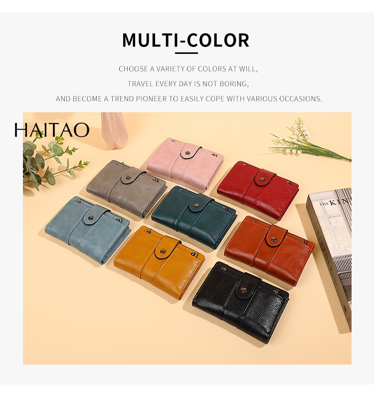 2025 nueva billetera retro de alta gama monedero de cuero dos veces corto con múltiples tarjetas, billetera de mujer