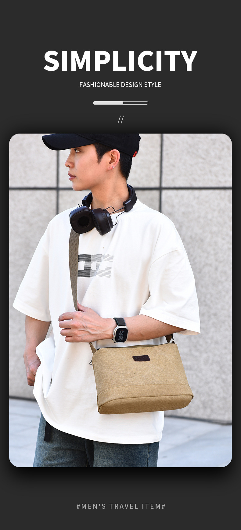 Transfronterizo nuevo tipo de bolso de lona para hombres, bolso de hombro urbano simple y casual, gran capacidad, bolso de moda ligero