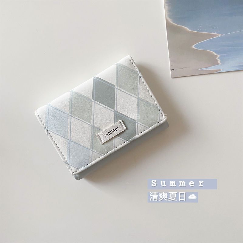 Sea sal azul Plaid billetera fresca simple ins estilo coreano multi-funcional estudiante cartera cambio tarjeta bolsa integrada