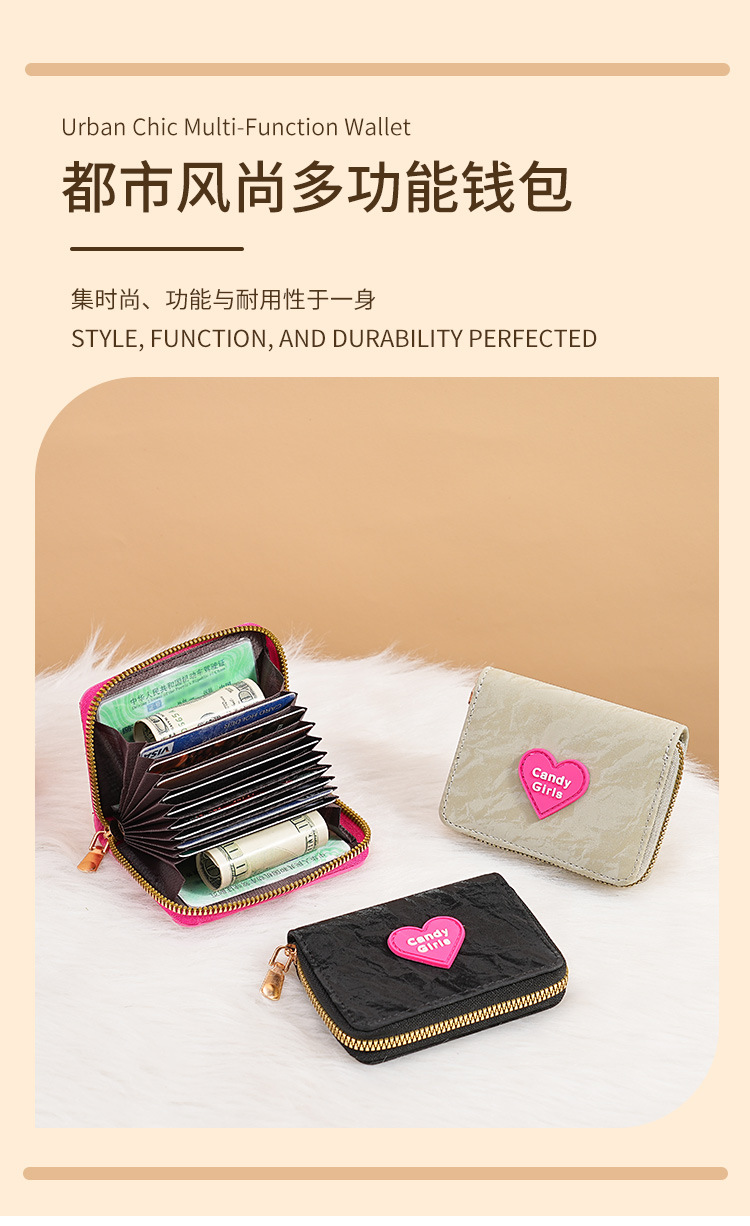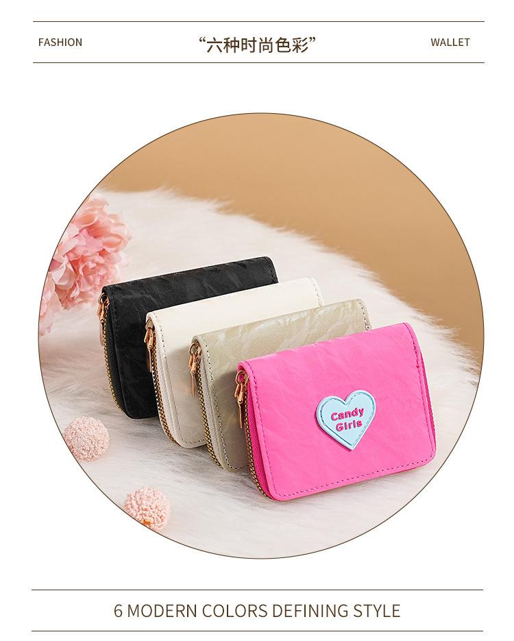 Nuevo cross-border cremallera billetera caramelo chica moda encantadora multi-tarjeta bolso de cambio de mujer cartera dulce clip corto