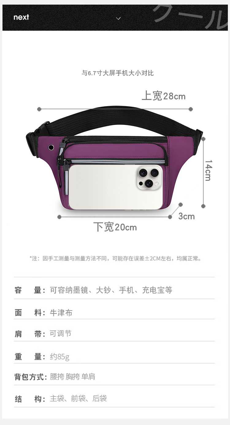Bolsa de cintura deportiva portátil multifuncional para montar al aire libre para correr bolso de pecho cercano para hombres y mujeres de moda para teléfonos móviles bolso de hombro