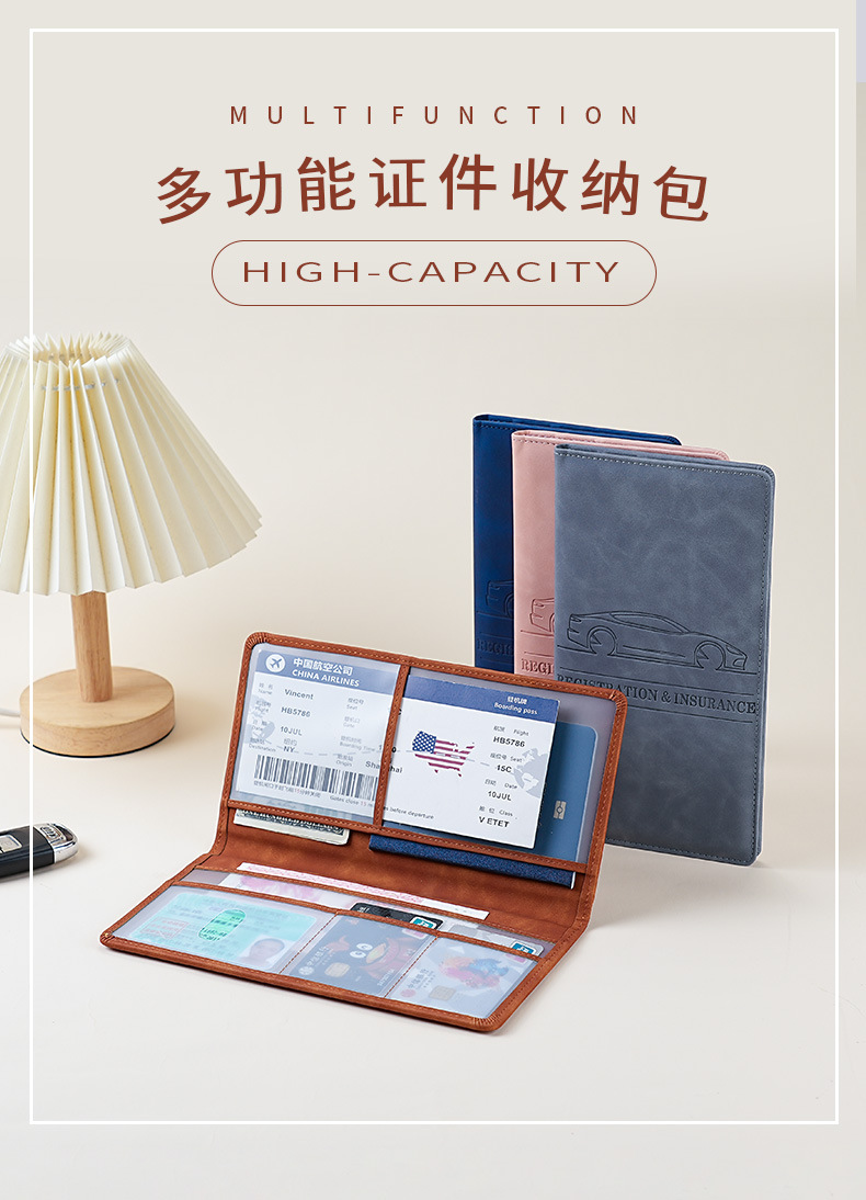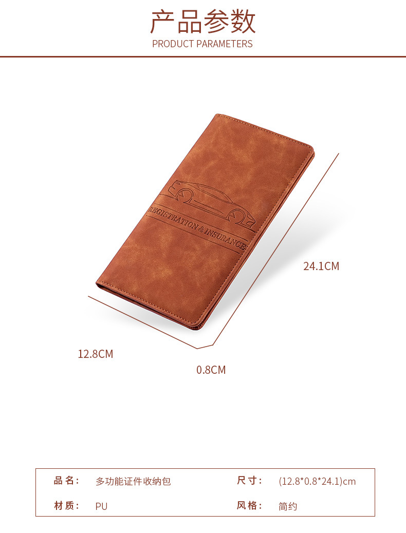 Bolsa de identificación de automóviles de cuero bolsa de tarjetas de registro de automóviles y titular de seguros multifuncional PU carpeta de documentos de automóviles