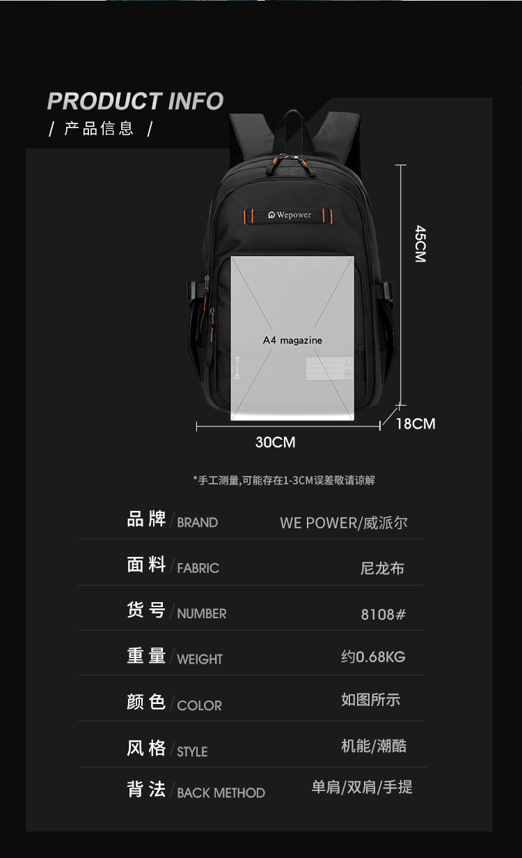 WEPOWER nueva mochila casual para hombres, mochila multifuncional de gran capacidad, mochila de viaje al aire libre.