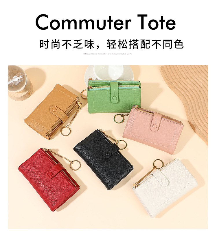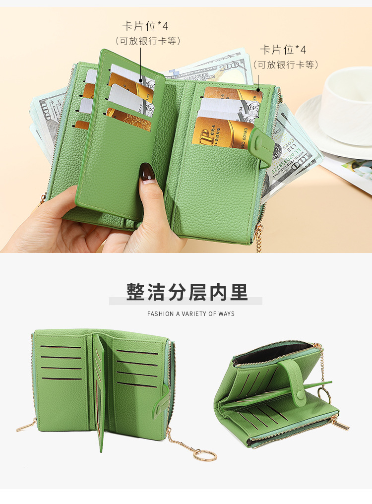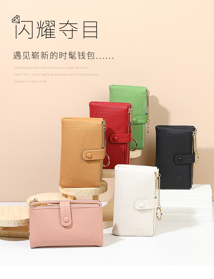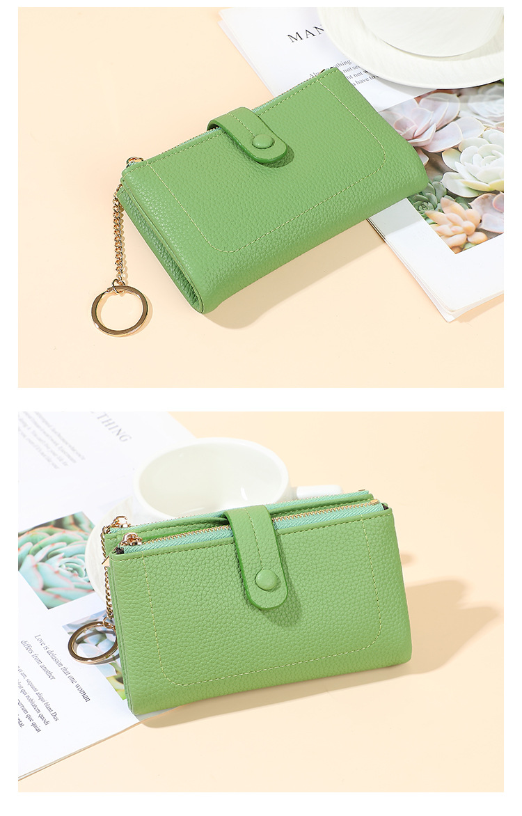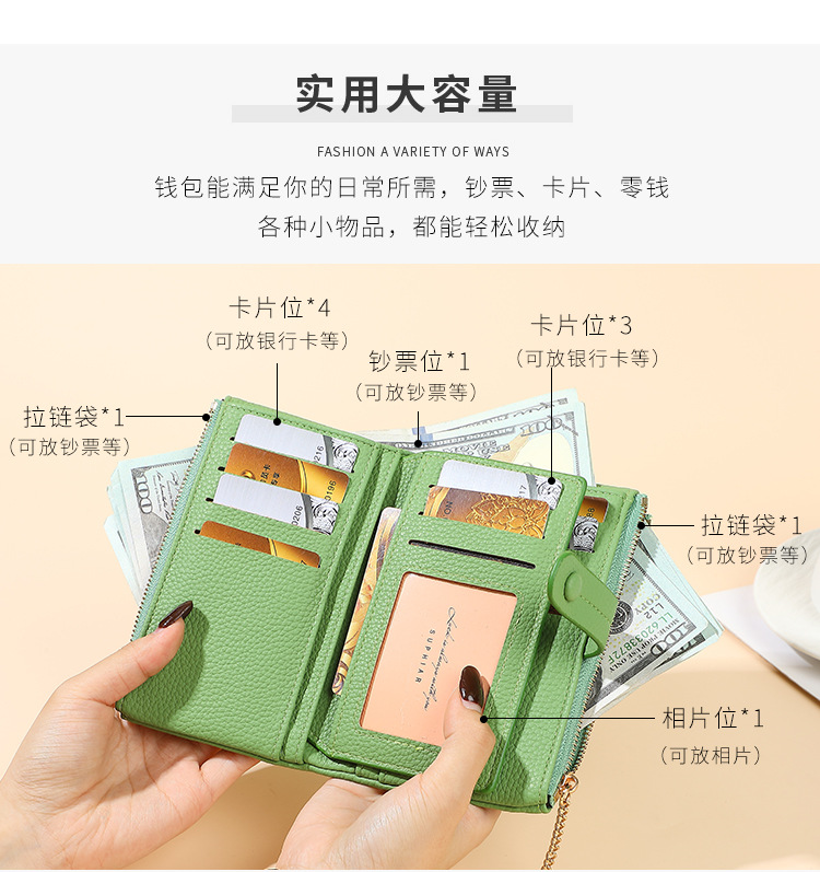 Monedero de mano para mujer japonesa de longitud media, monedero con doble cremallera, billetera transfronteriza de tres pliegues de gran capacidad con múltiples tarjetas