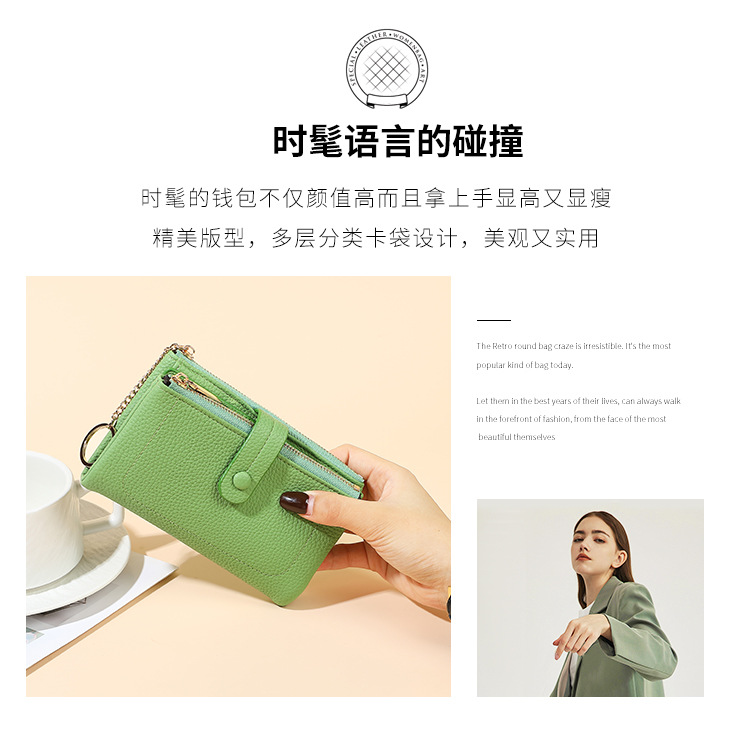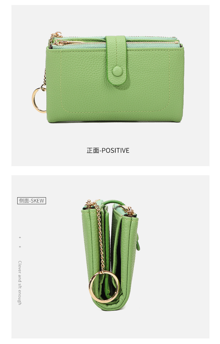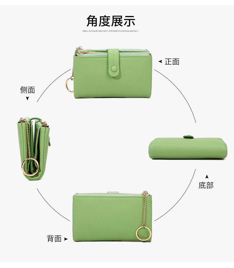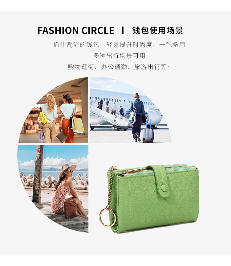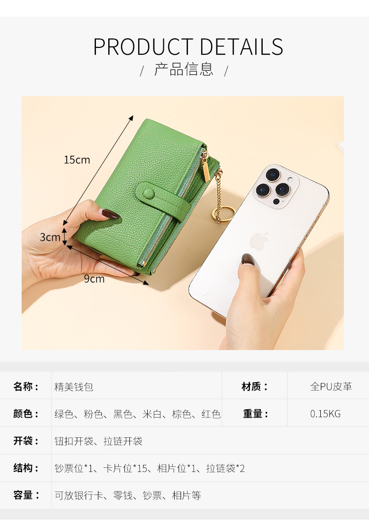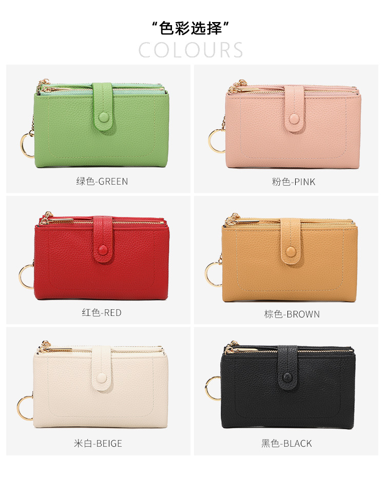 Monedero de mano para mujer japonesa de longitud media, monedero con doble cremallera, billetera transfronteriza de tres pliegues de gran capacidad con múltiples tarjetas