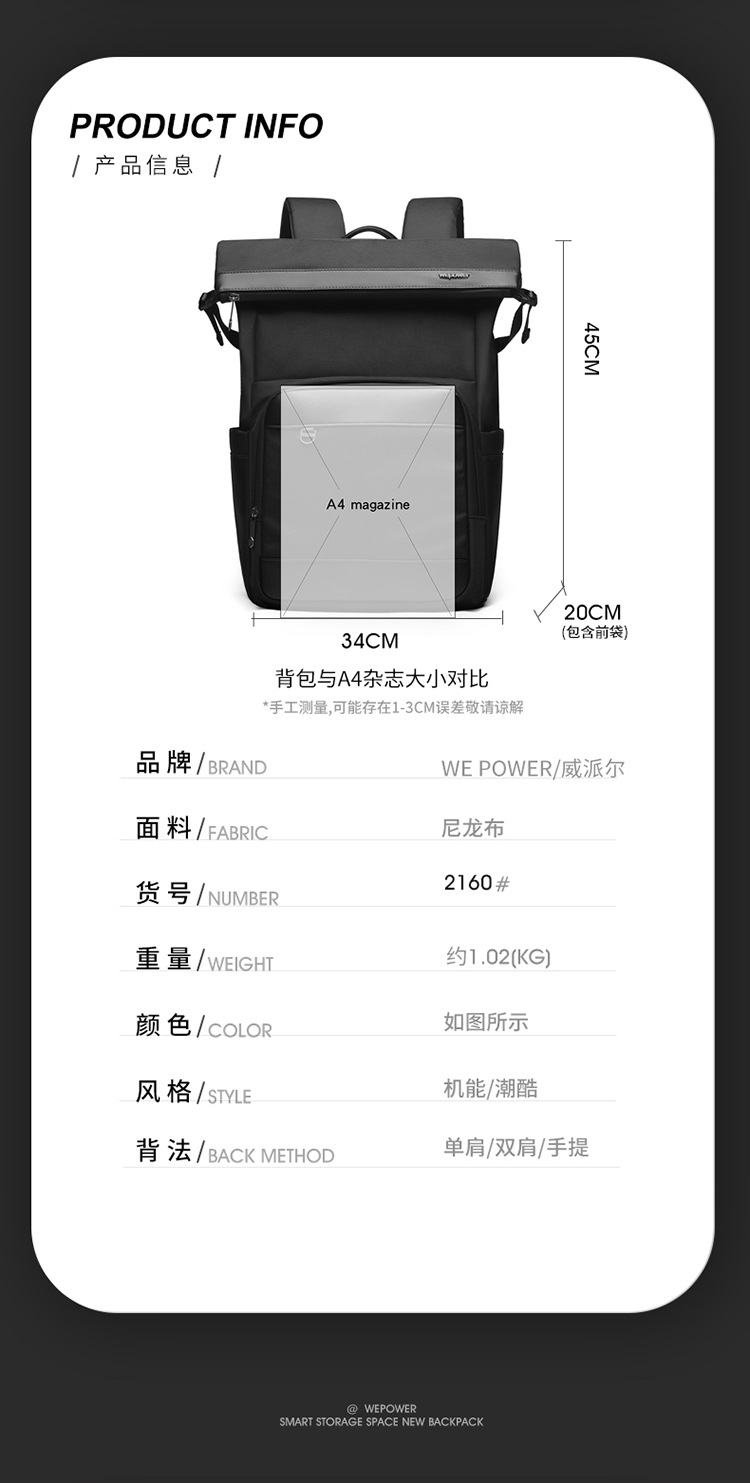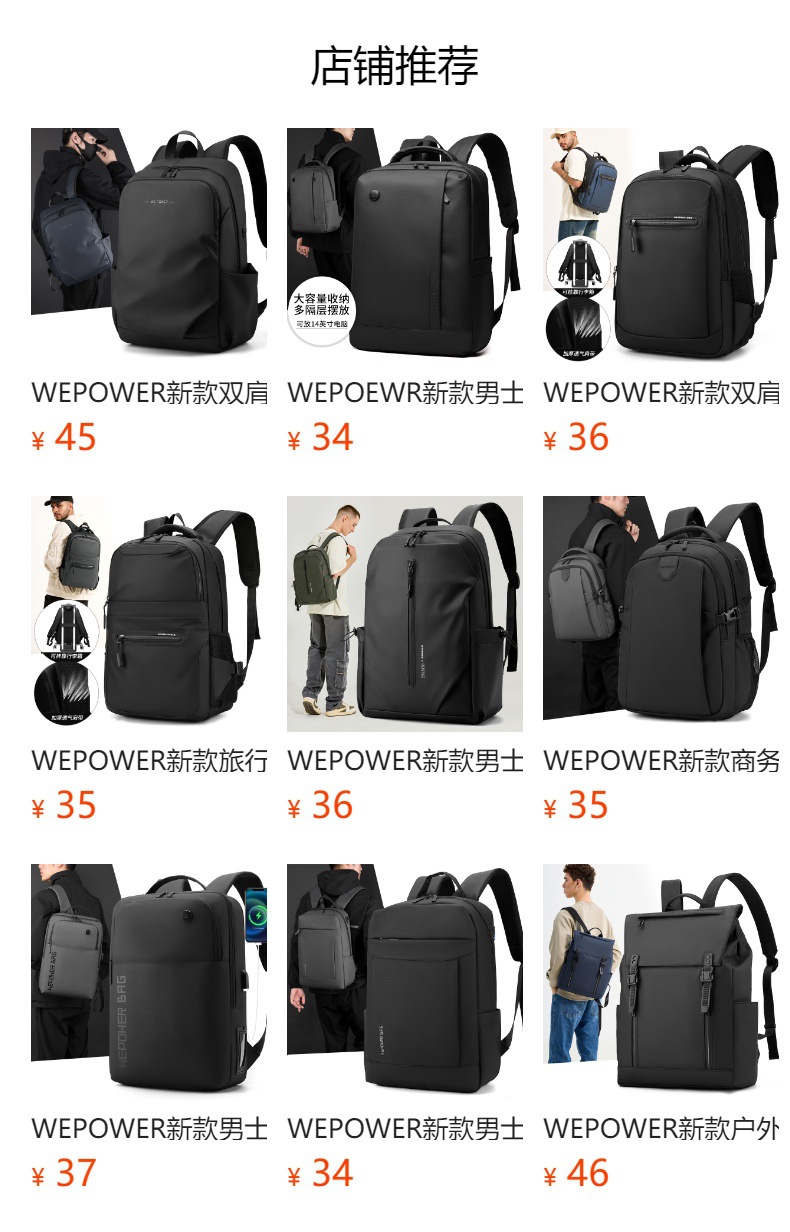 WEPOWER nueva mochila de negocios hombre moda mochila universitaria mochila portátil a prueba de agua mochila