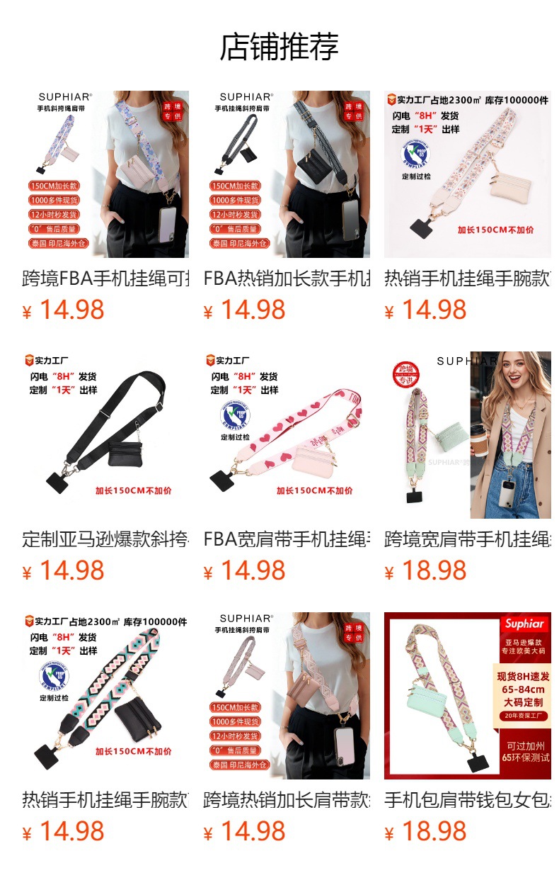 Monedero de correa de hombro ancha para teléfono móvil de venta caliente de FBA, cordón de teléfono móvil simple europeo y americano, mensajero, espalda con cuerda larga anti-pérdida