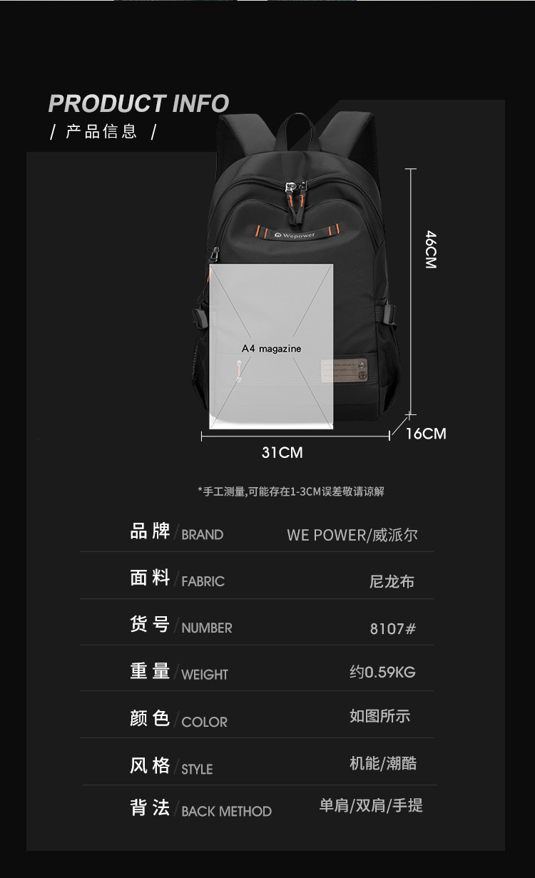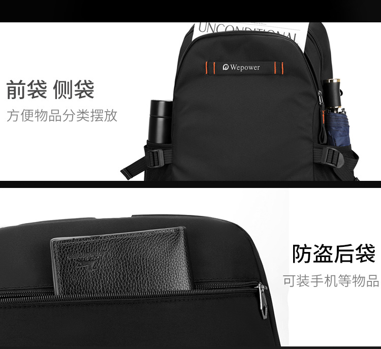 WEPOWER nuevo tipo de mochila de hombre, mochila de computadora de viaje, mochila de ocio de estudiantes de secundaria y secundaria de gran capacidad