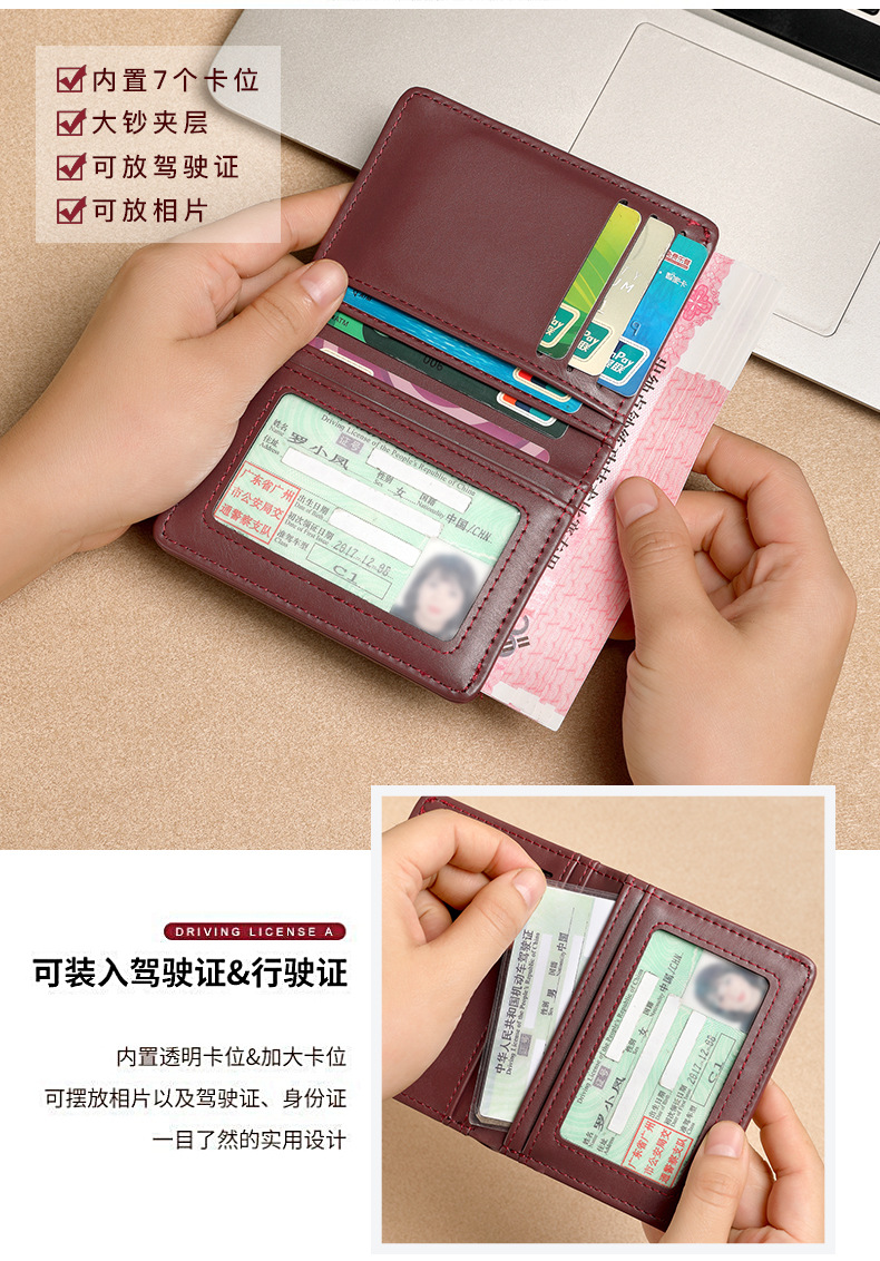 Cartera de hombre 2024 nueva cartera de cuero corta cartera cartera de tarjeta de licencia de conducir cartera de hombre cartera de cuero