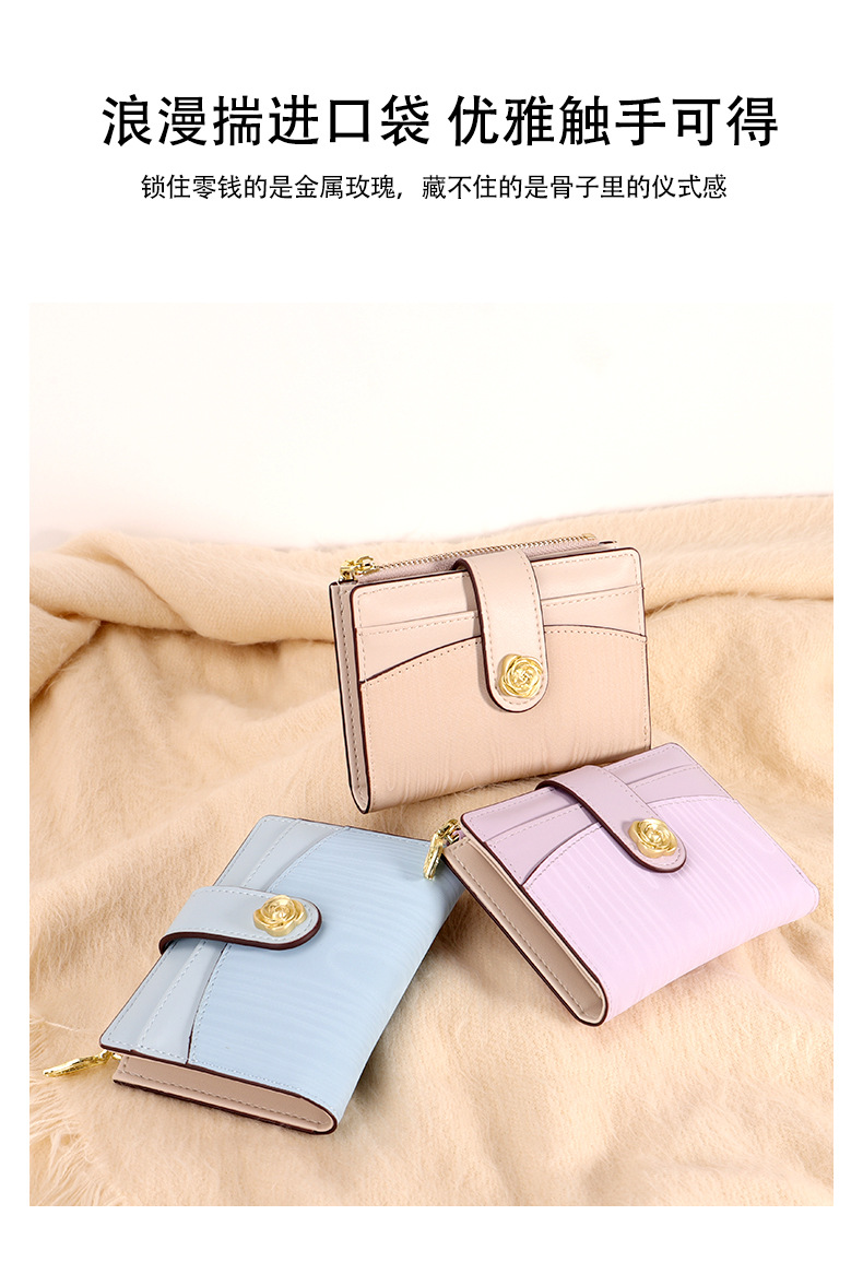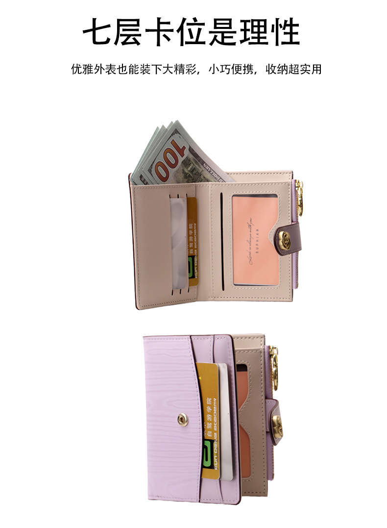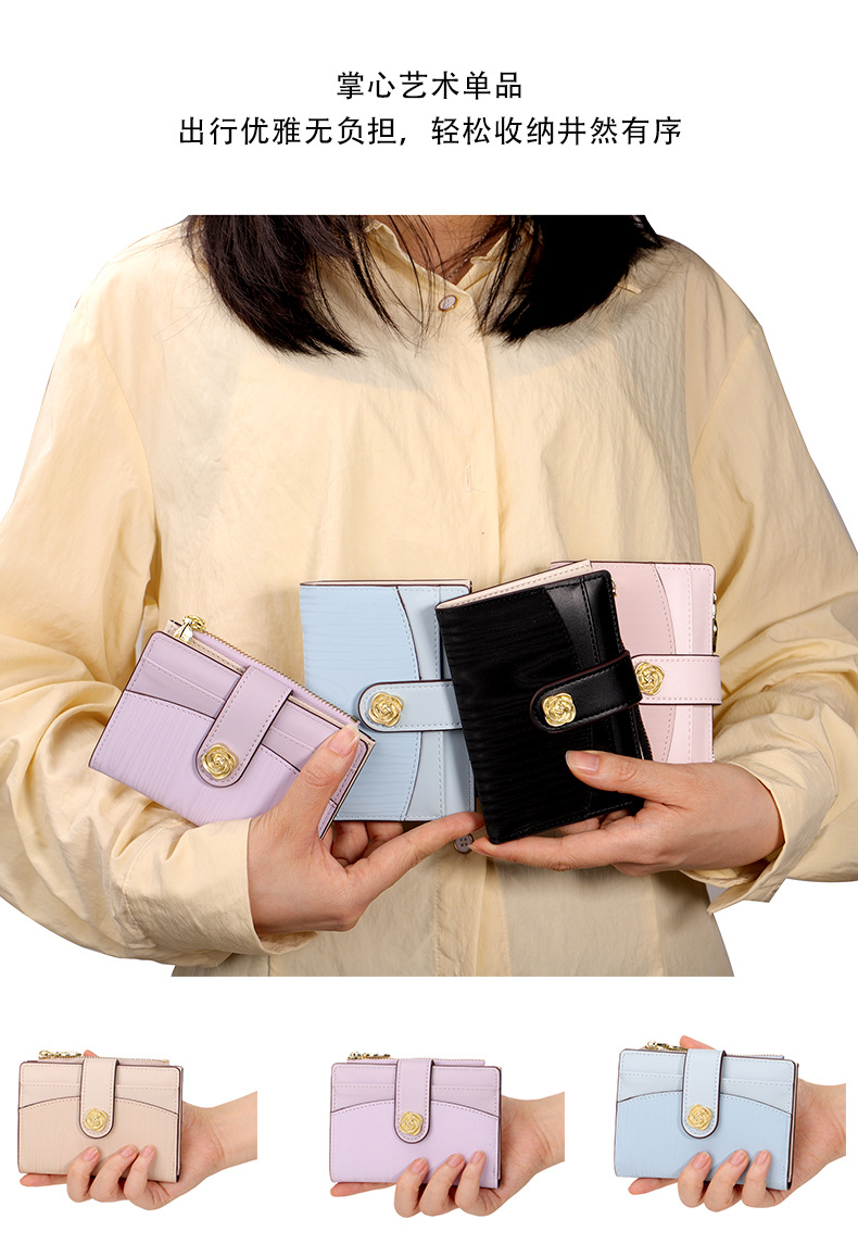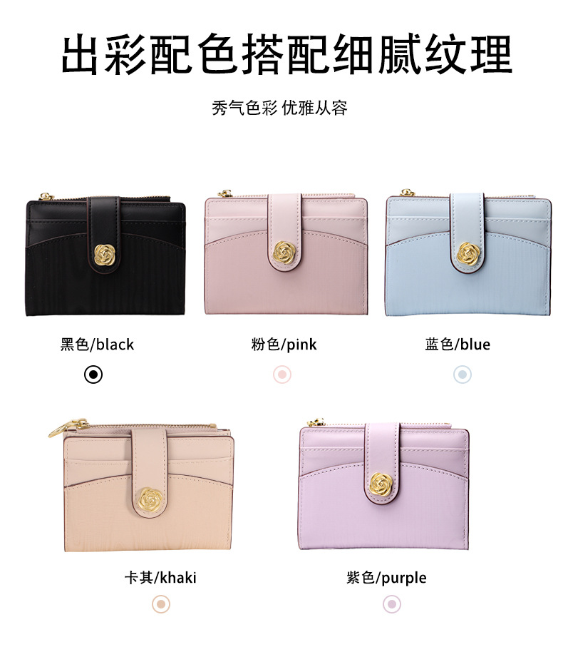 Nuevos productos transfronterizos Bolso de tarjeta de mujer corto suave japonés Cartera de múltiples tarjetas Monedero de color caramelo Cartera de estudiante