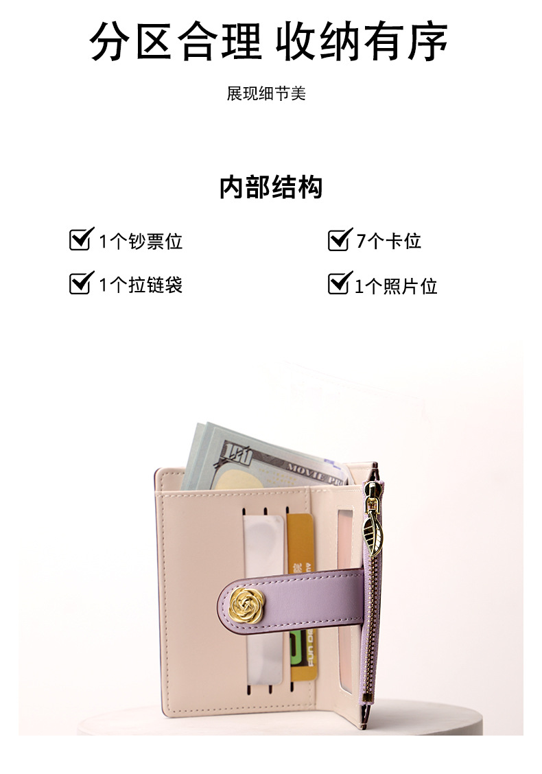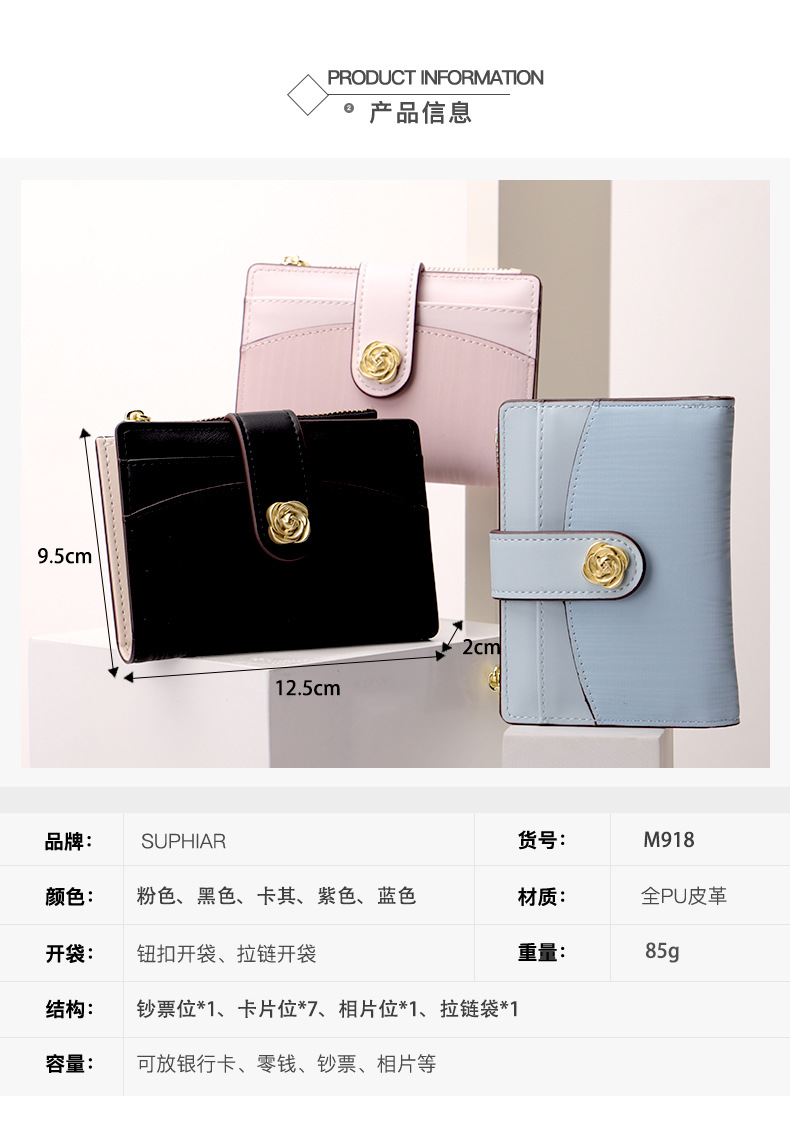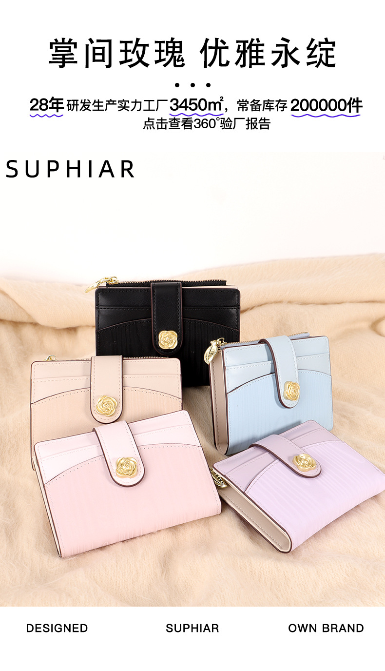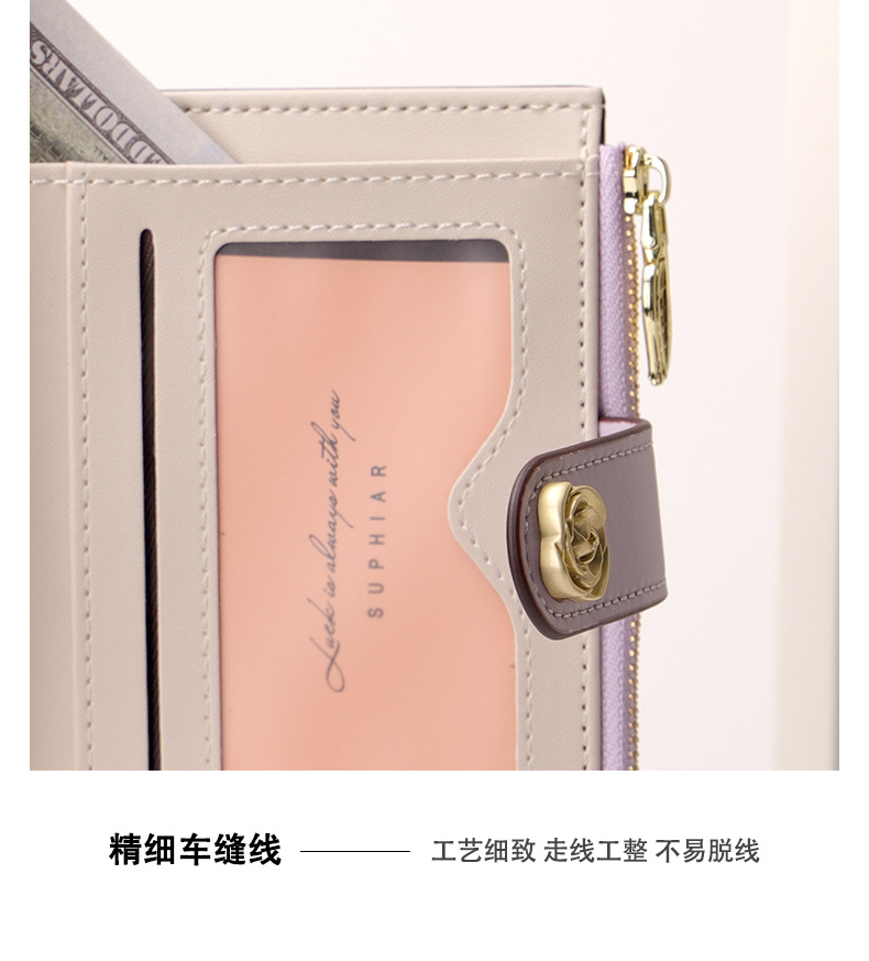 Nuevos productos transfronterizos Bolso de tarjeta de mujer corto suave japonés Cartera de múltiples tarjetas Monedero de color caramelo Cartera de estudiante