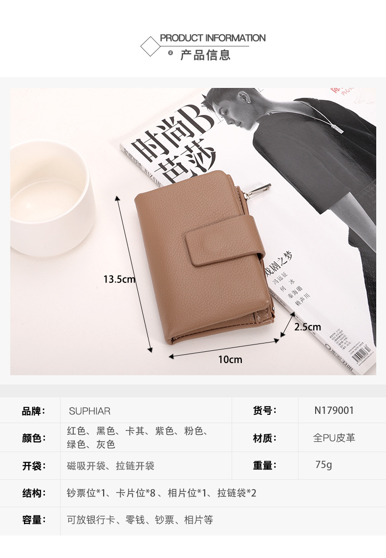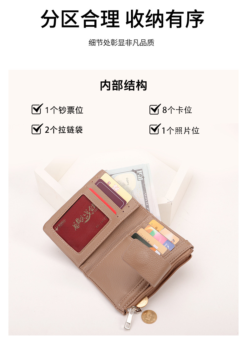 2025 Europa y los Estados Unidos nueva cartera de mujer alta sensación simple PU litchi doble doble cartera multifuncional en una cartera