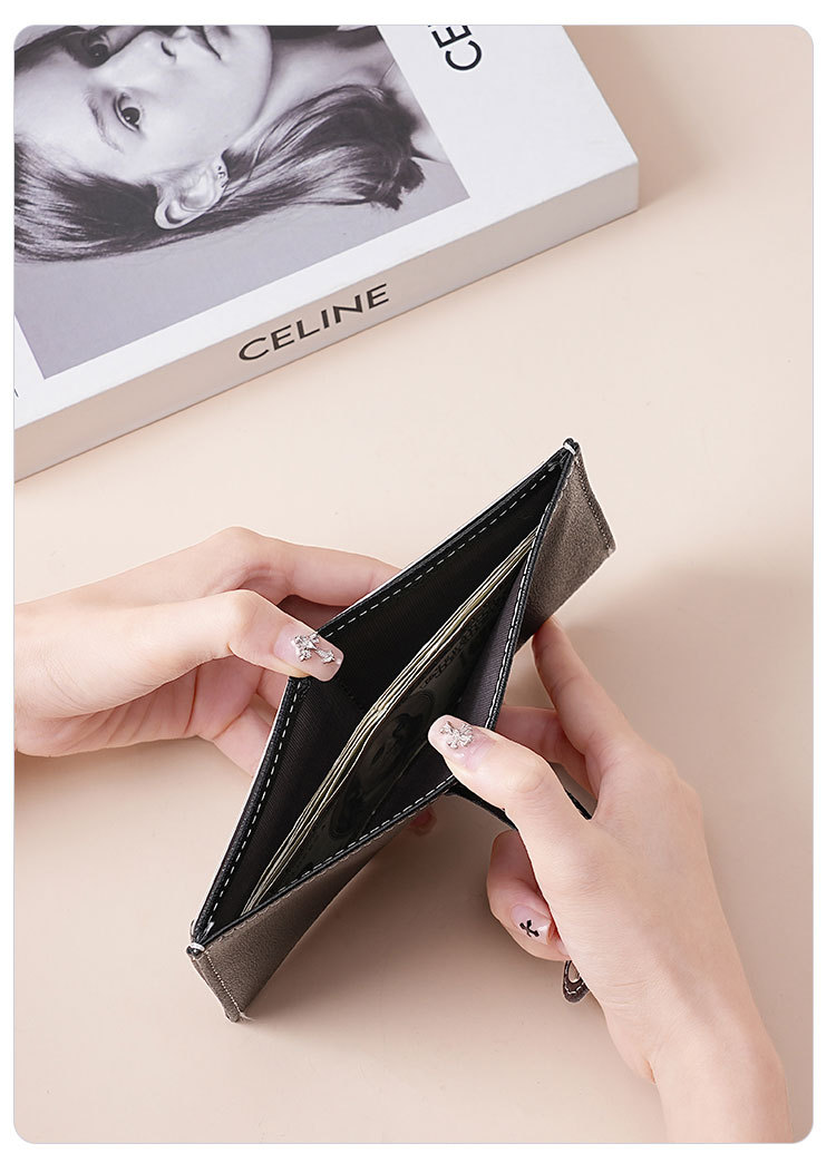 Transfronterizo para bolsas de tarjetas delgadas coreanas pequeñas y multifuncionales para hombres y mujeres exquisitos clipes de tarjetas de cuero PU cubierta de tarjetas mayorista