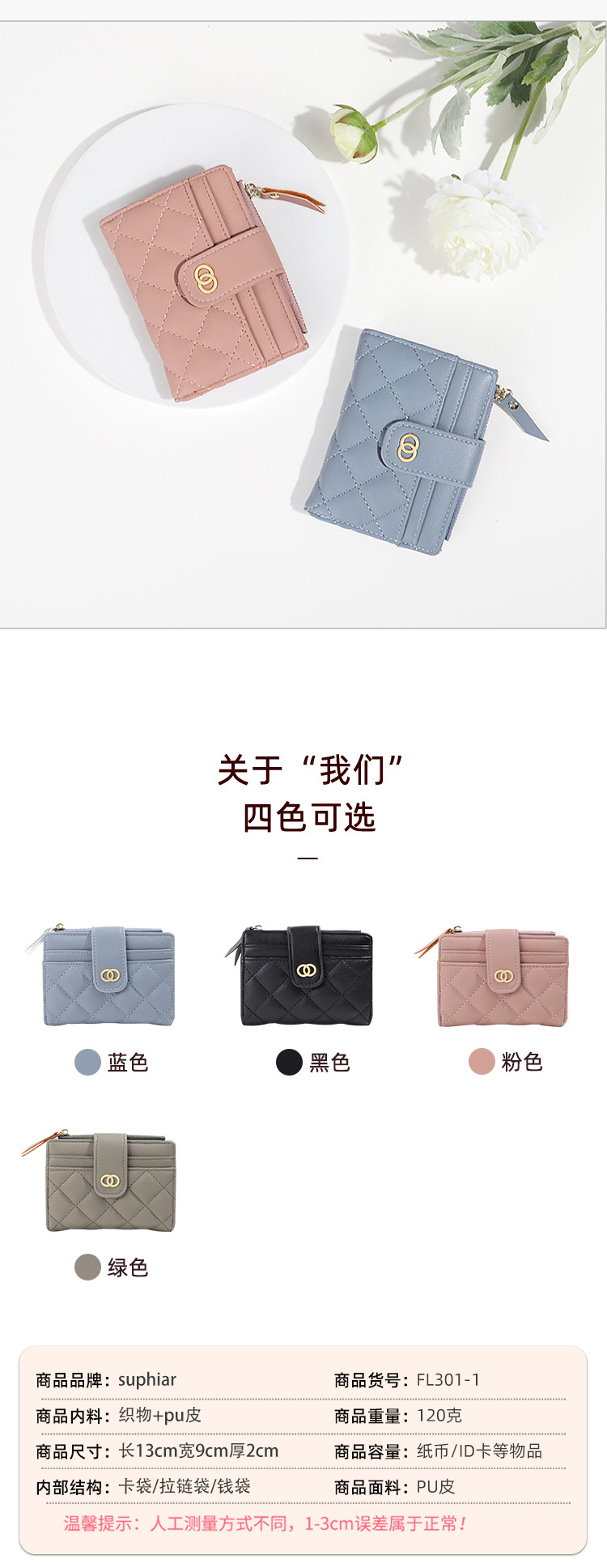 Suphiar personalizado cross-border hot sale bolso corto para mujeres ins viento de color sólido cremallera bolso de cambio simple bolsa de tarjetas en uno
