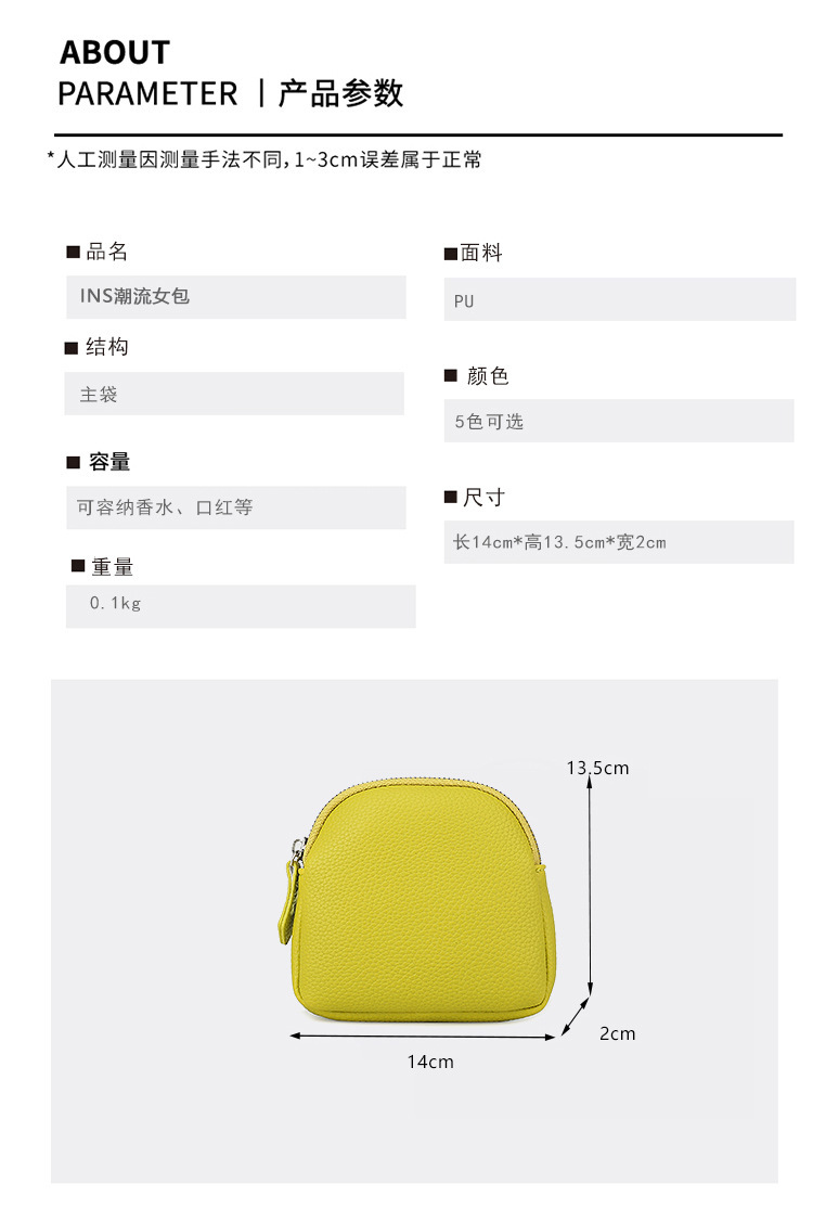 Bolsos transfronterizos ins para mujer, monedero coreano, mini embrague, bolso pequeño con cremallera de cuero suave simple, bolso para auriculares, bolso de almacenamiento
