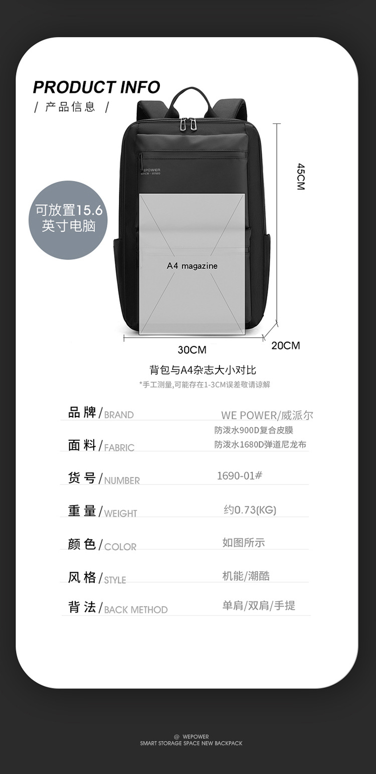 WEPOWER nueva mochila de negocios, mochila de gran capacidad de viaje de ocio, bolsa de computadora de viaje multifuncional