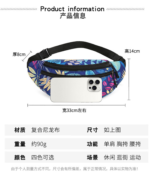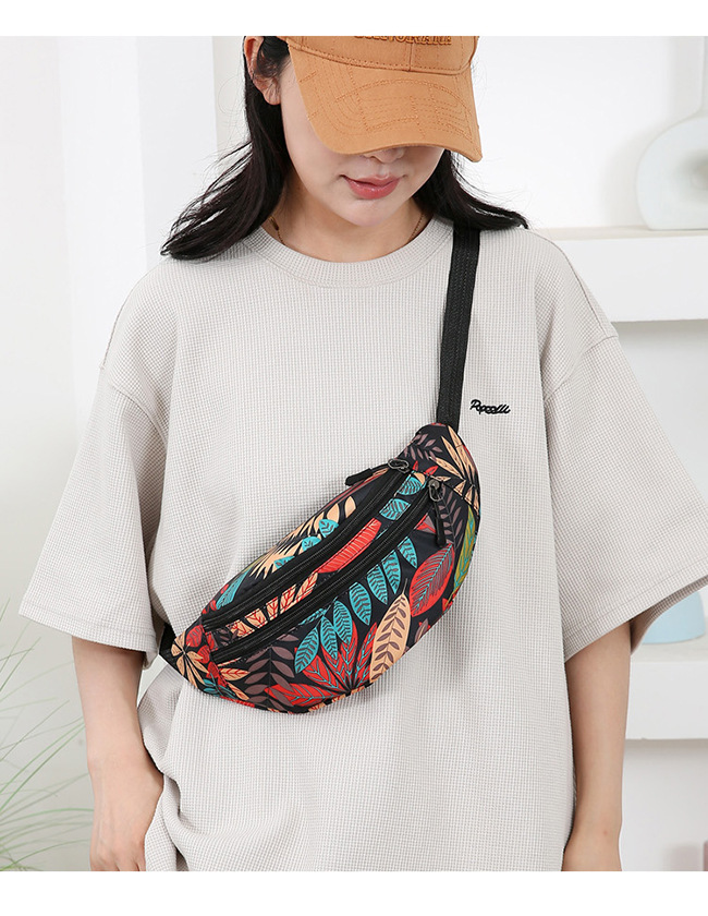 Nueva riñonera para mujer, bolso para teléfono móvil, bolso de mensajero informal, estampado, puesto ajustado, billetera, mochila de viaje
