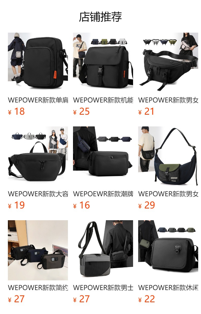 WEPOWER nueva bolsa de mensajero de viaje en la calle transfronteriza bolsa de mensajero de hombro de viaje bolso de pecho personalizado de moda