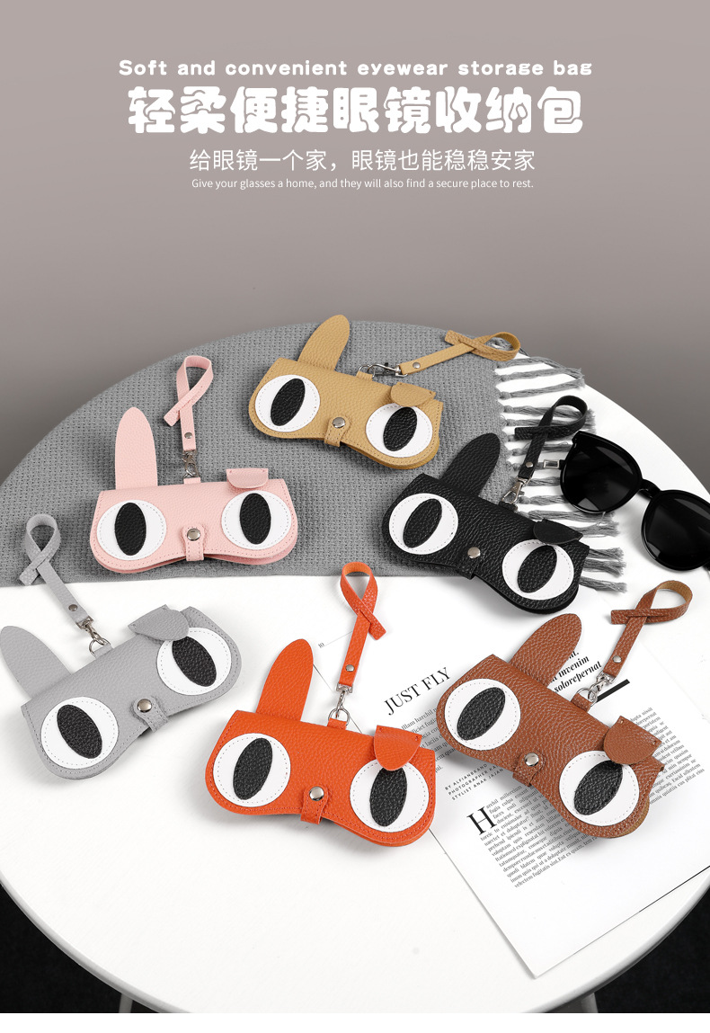 Caja de gafas encantadora de dibujos animados, gafas de sol portátiles para hombres y mujeres, bolsa de almacenamiento para gafas de miopía, bolsa de gafas, colgante