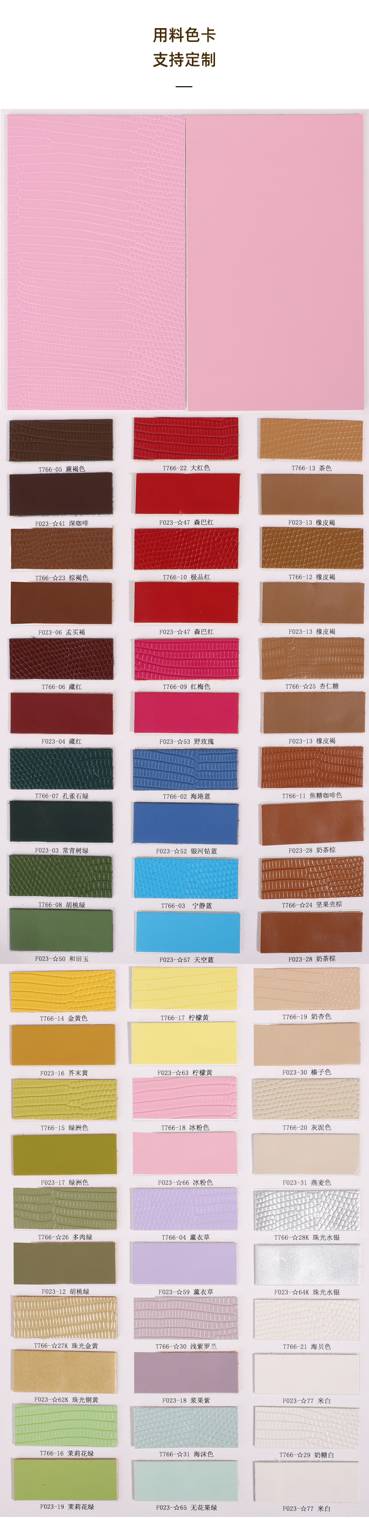 | Color | Rosa, verde, púrpura, marrón |