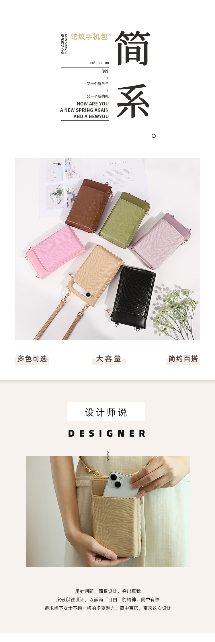 Bolso de teléfono móvil de tendencia universal simple bolso de cambio de teléfono móvil de mujer ligero bolso de teléfono móvil de alta calidad personalizado