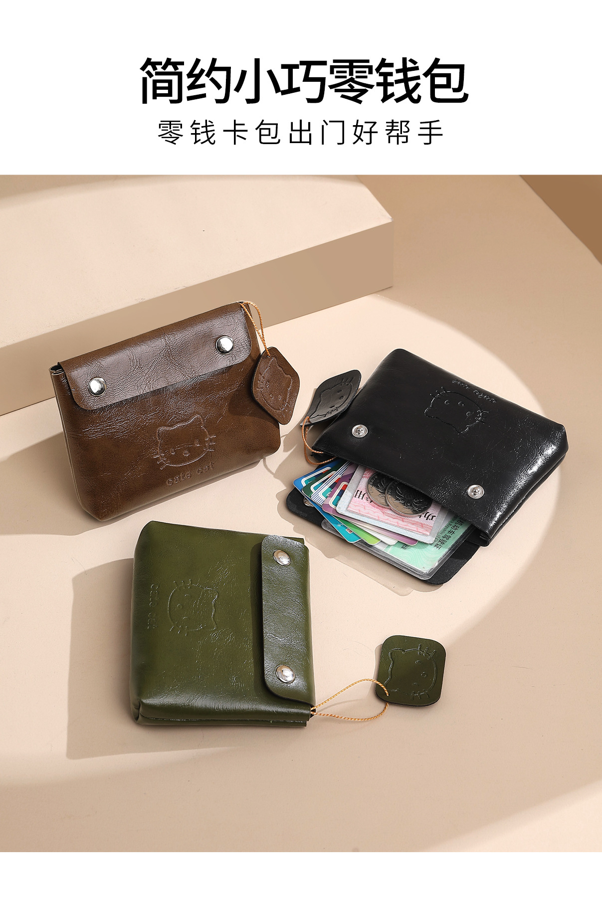 Bolso de cambio de comercio exterior para mujeres nuevo bolso corto delgado color sólido PU bolso de cambio mini cremallera bolsa de tarjetas bolsa de monedas