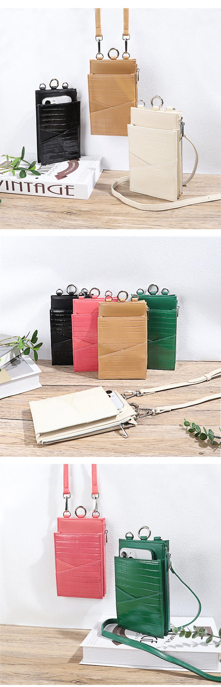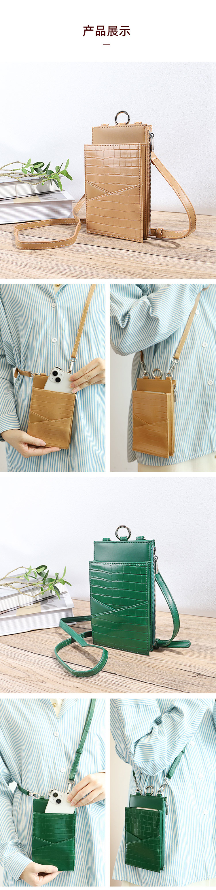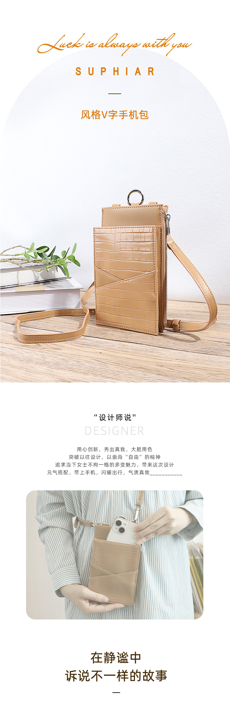 Bolsa de tendencia para teléfonos móviles con patrón de piedra en V. Bolsa de hombro de verano para mujeres. Bolsa de cambio móvil de moda ligera.