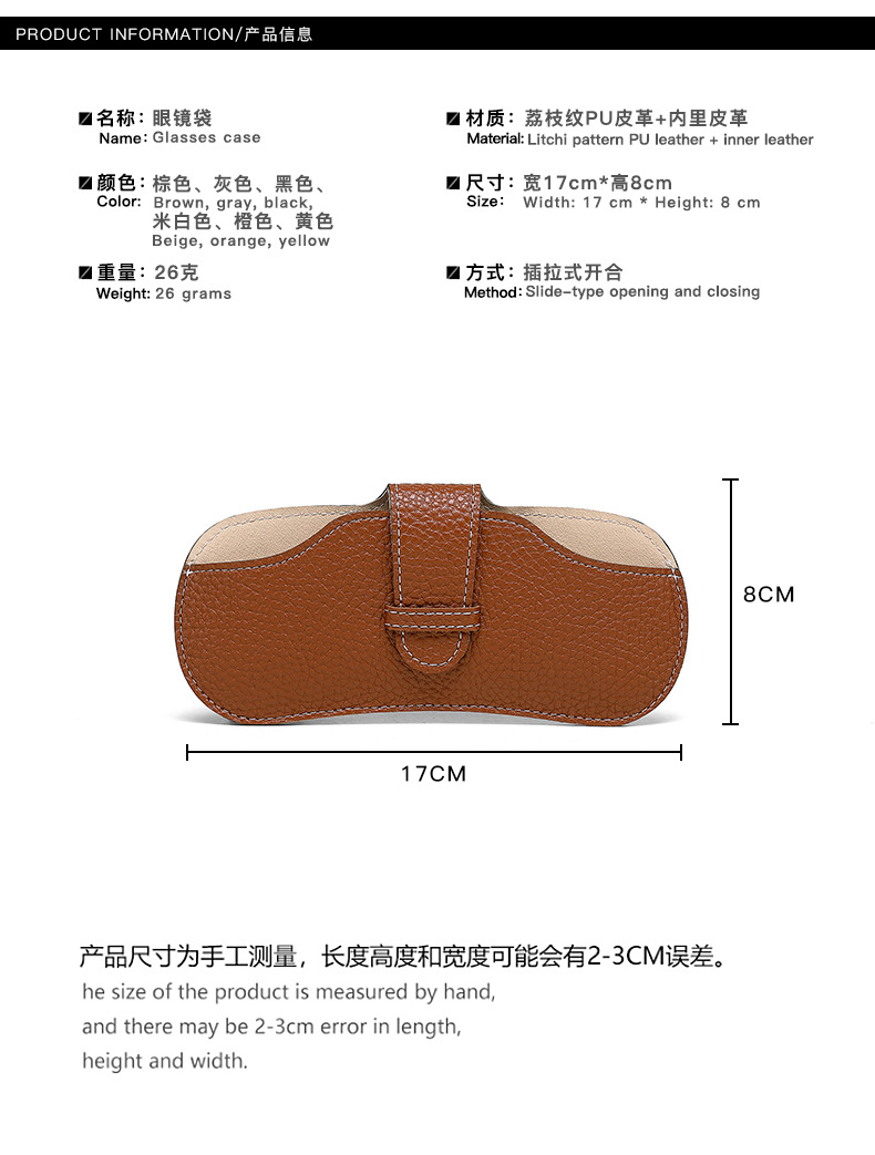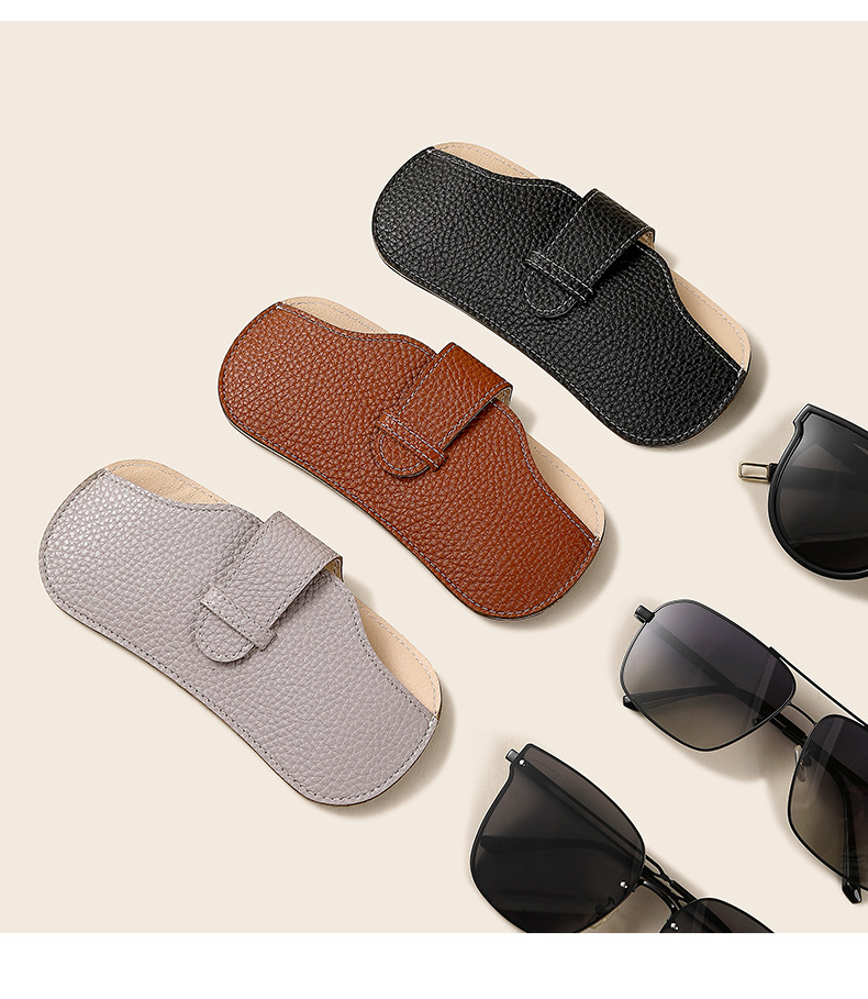Bolsa de gafas de cuero suave portátil caja de gafas, gafas de sol resistentes a la compresión, bolsa de almacenamiento para gafas de miopía para hombres y mujeres, cubierta protectora