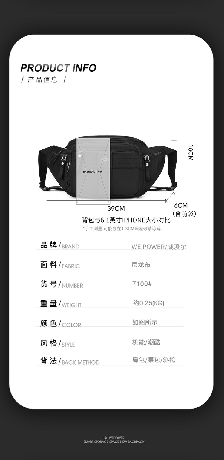 wepower nuevo tipo de bolso de cintura para hombres, mochila para montar al aire libre, mochila de hombro, bolso de pecho deportivo impermeable, ocio