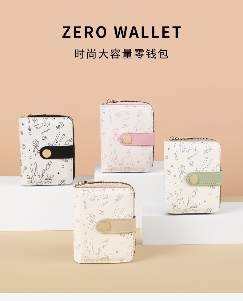 Simples y lindos gatitos de estilo japonés damas hebilla cambio de mano con bolso corto multifuncional para mujeres
