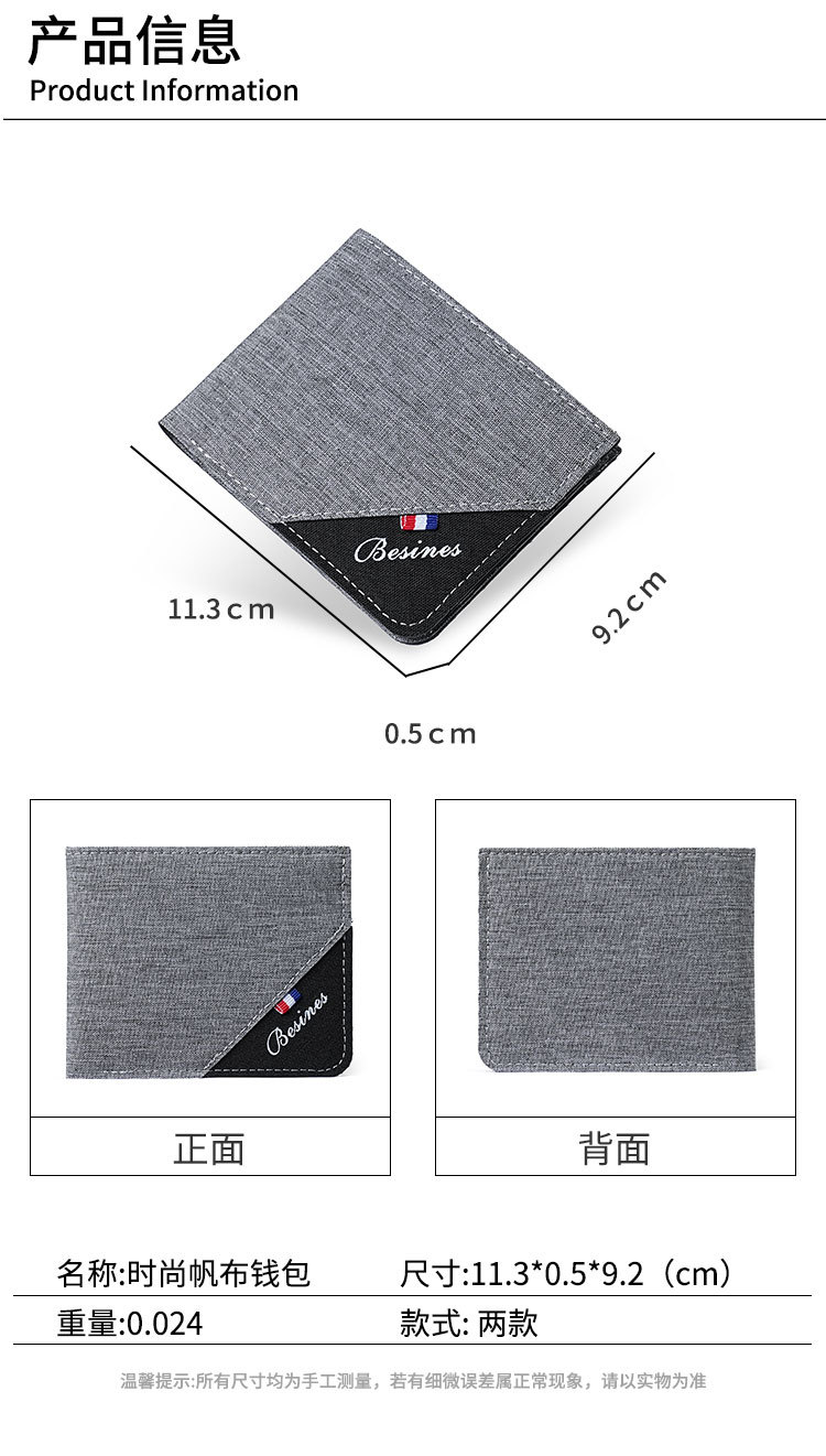 | Colores | Cartera de lona empalmada-gris,Cartera de lona empalmada-negro |