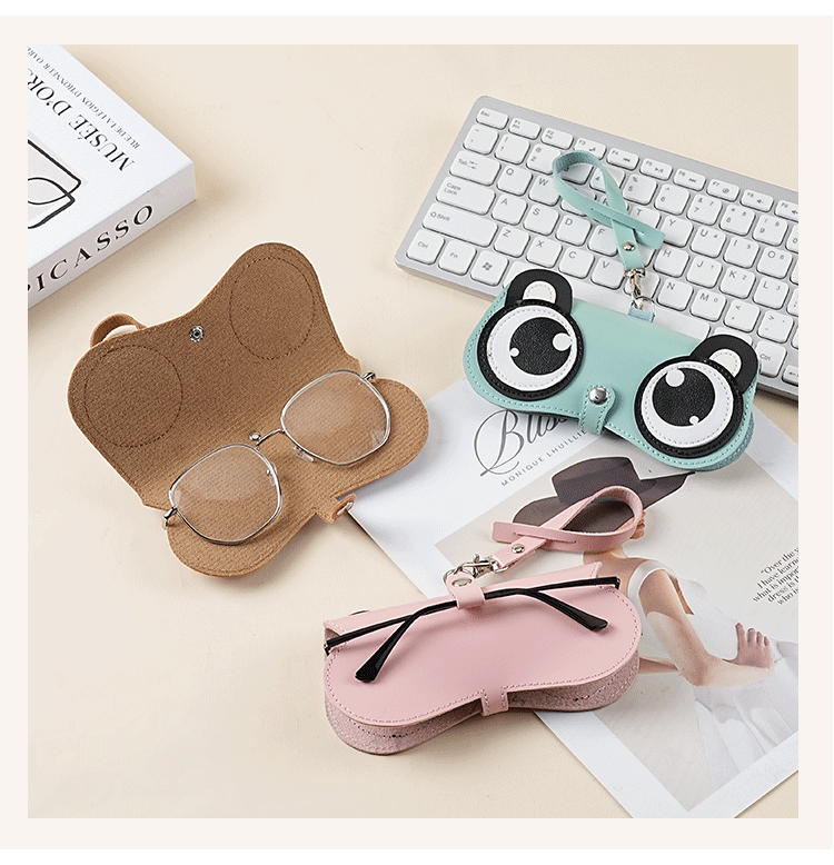 Cartoon cute glasses clipins moda gafas de sol bolsa portátil gafas de sol caja protector bolsa para hombres y mujeres colgante