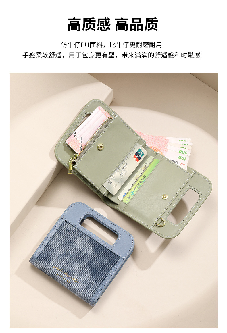 Centro comercial coreano con la misma billetera para mujer, cadena de sensación de alta gama, billetera plegable, billetera corta para mujer, ins para mujer