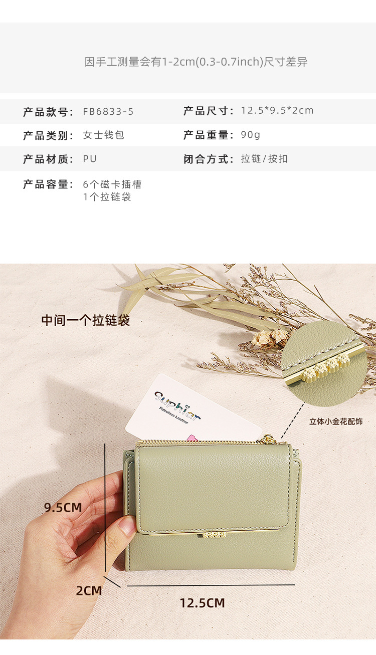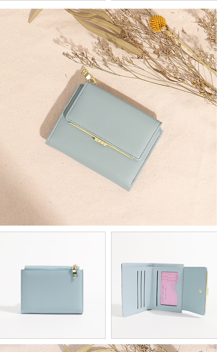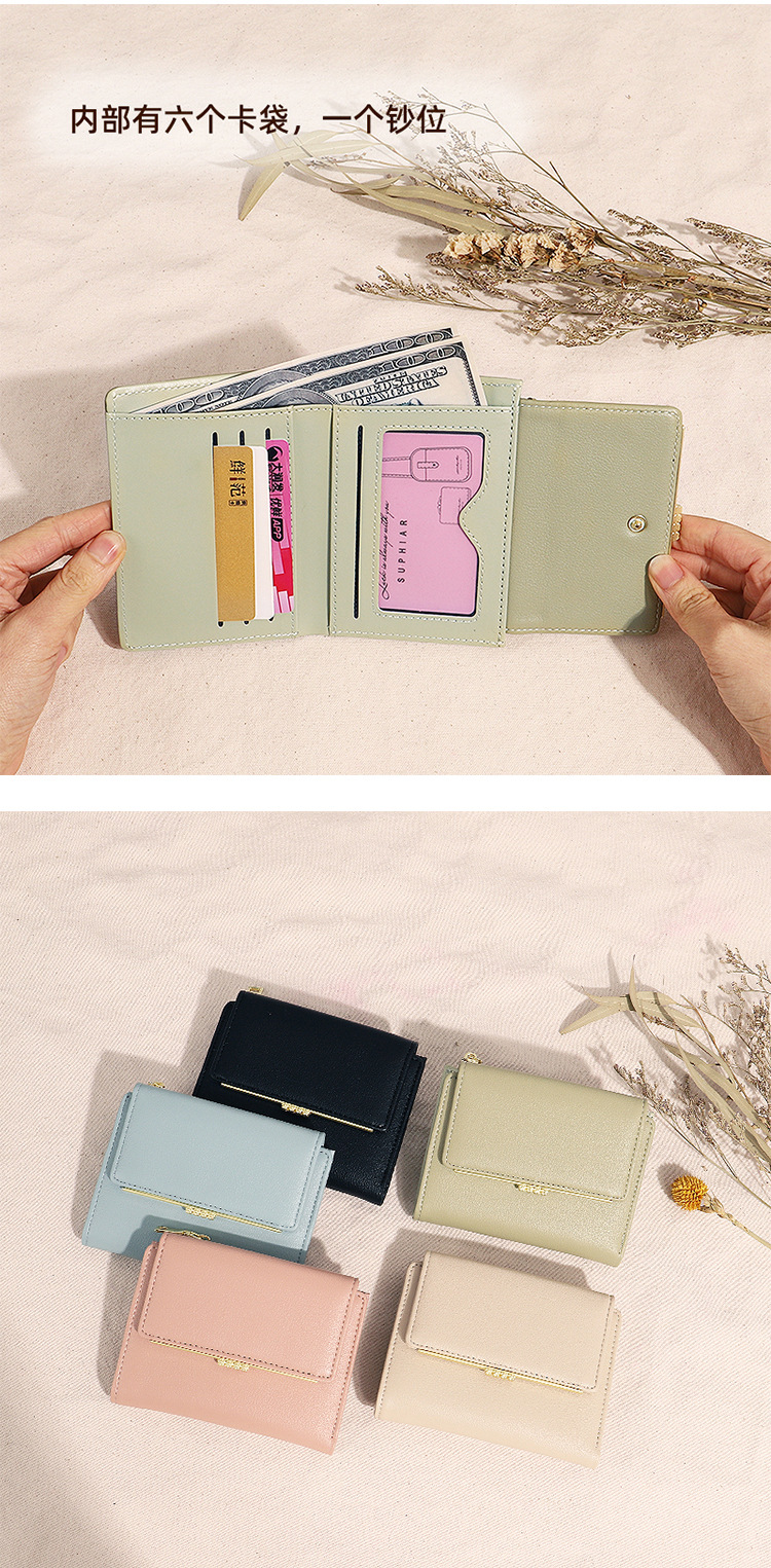 Cartera corta para mujer 2024, nueva cartera plegable de verano para mujer, monedero, tarjetero para estudiantes, con bloques de color, función impermeable
