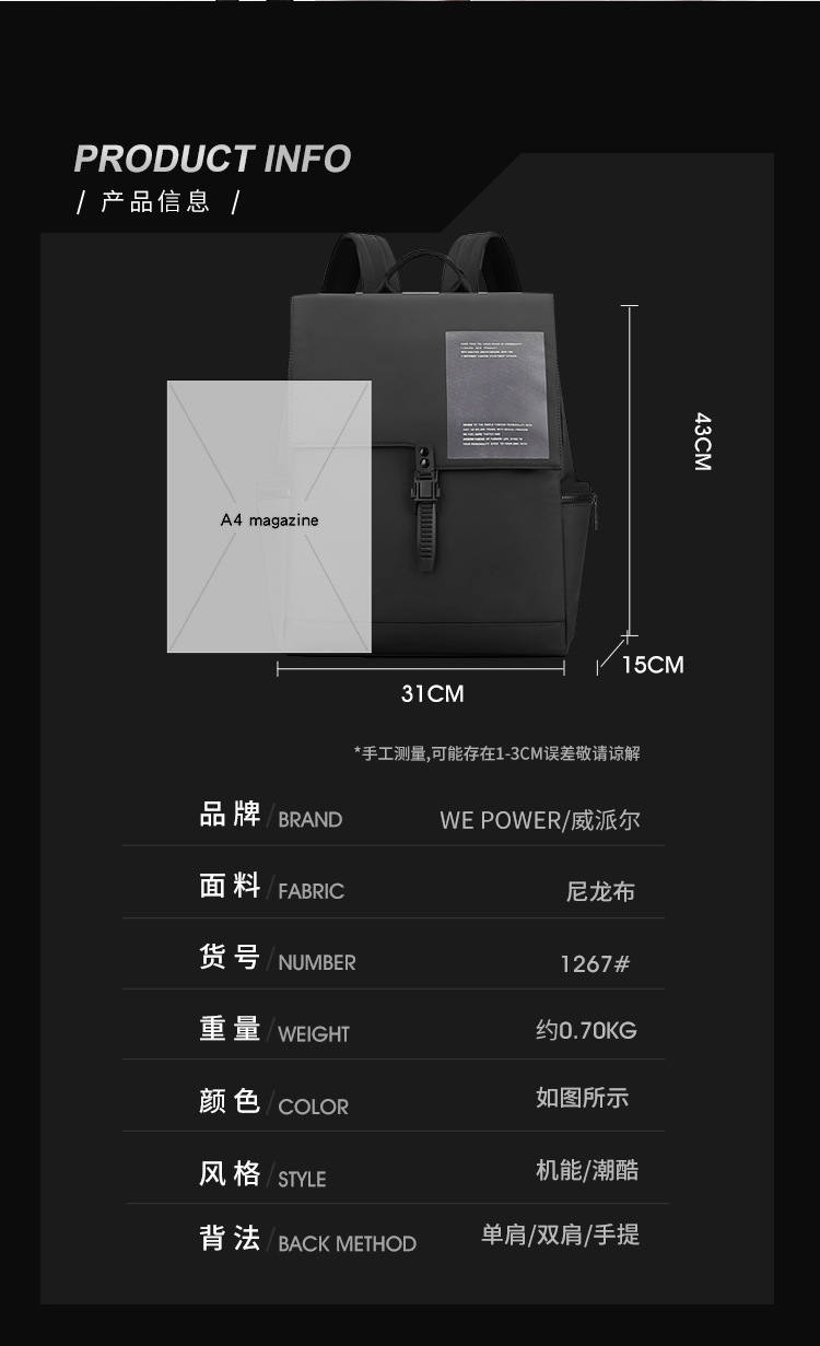 Wepower nueva mochila casual de los hombres de negocios al aire libre mochila de la computadora de viaje de ocio mochila