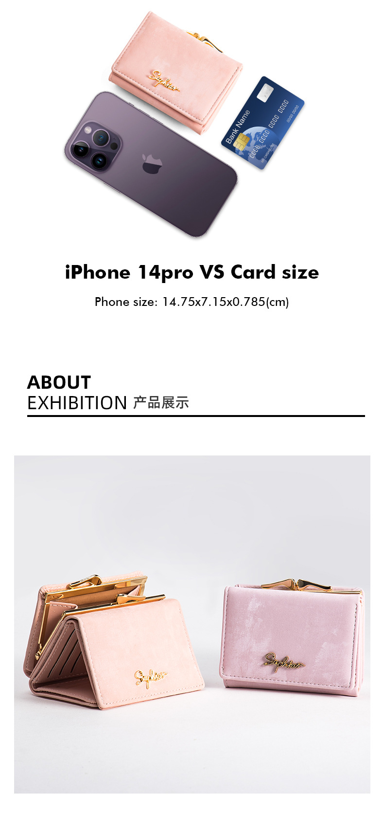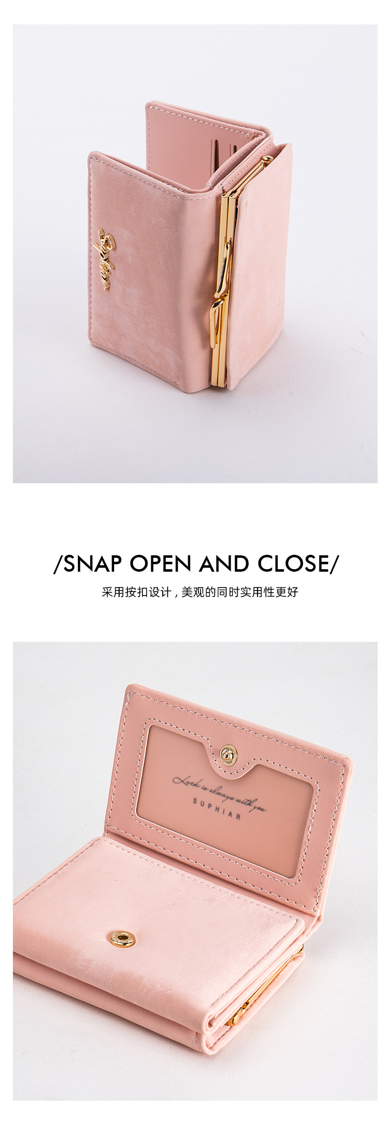 Cartera para mujer estilo K, linda, corta, triple, multifuncional, con clip para tarjetas, monedero y almacenamiento personalizado.