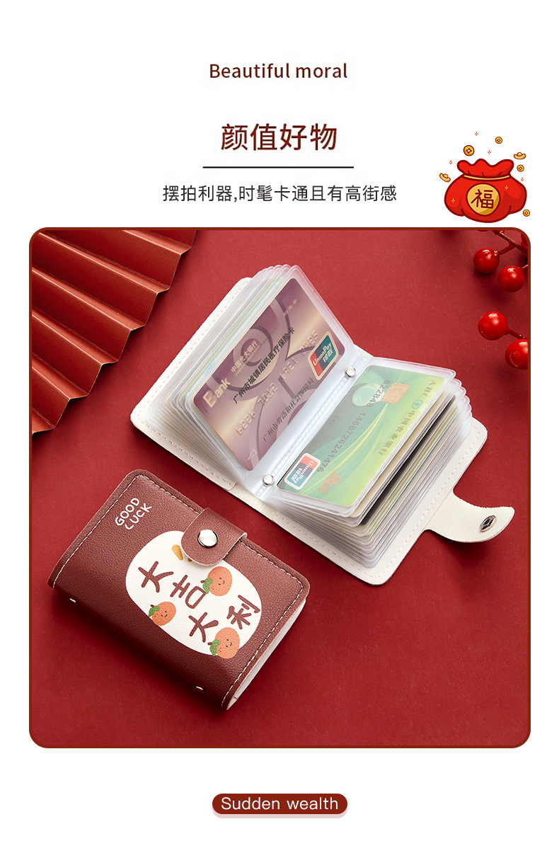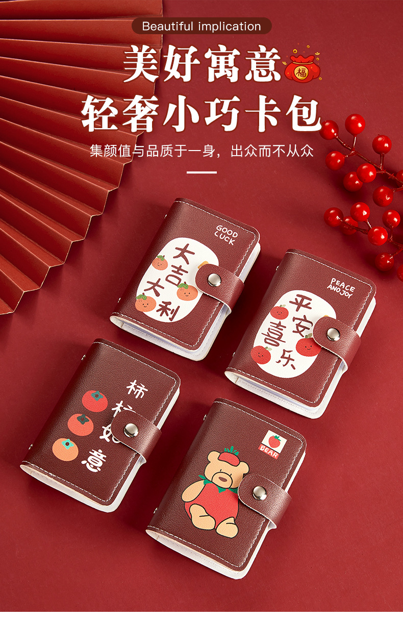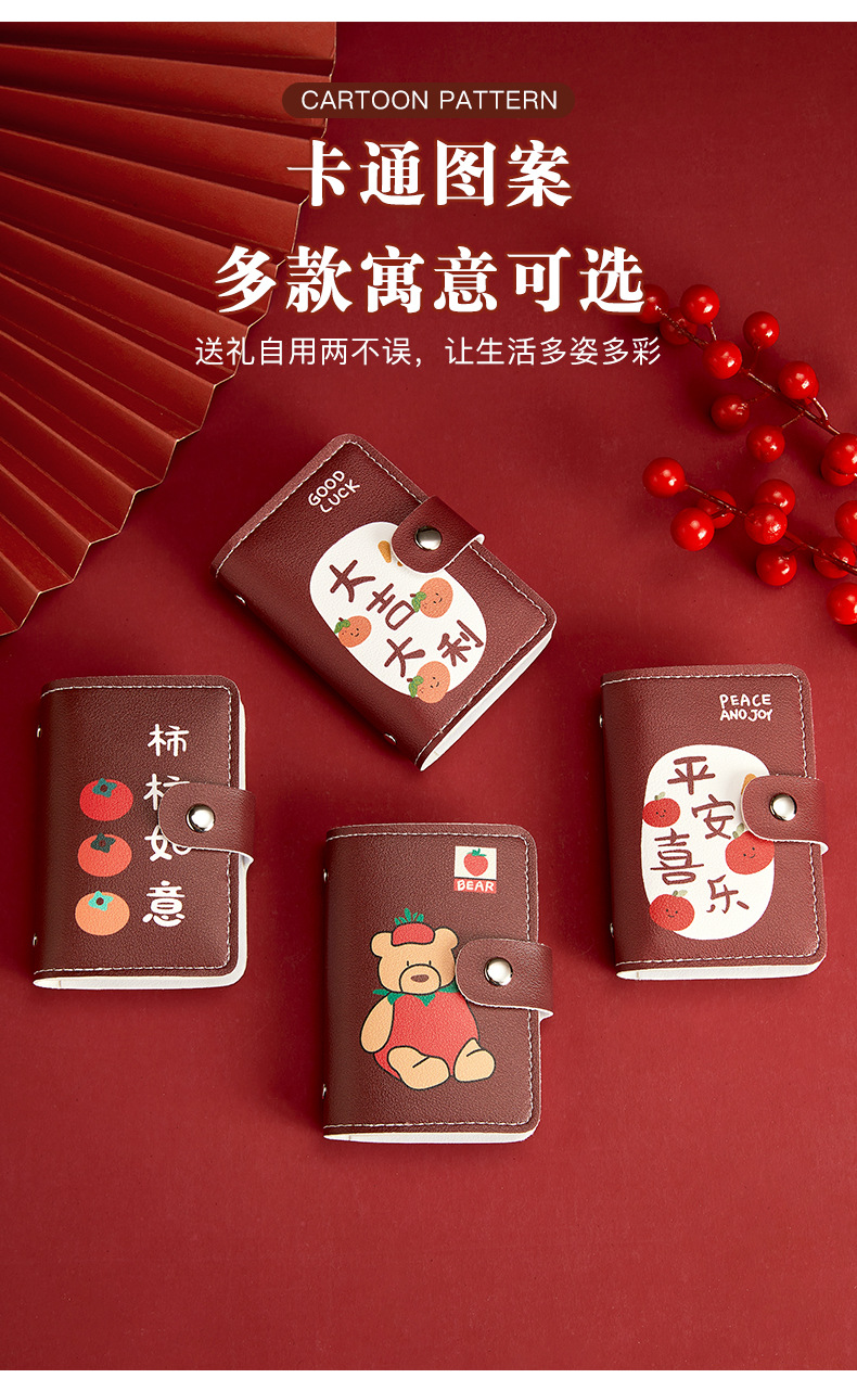 Bonita bolsa de tarjetas de dibujos animados de buena suerte personalidad femenina gran capacidad multi-tarjeta super delgada anti-damagnetizante tarjeta compacta bolsa de tarjetas
