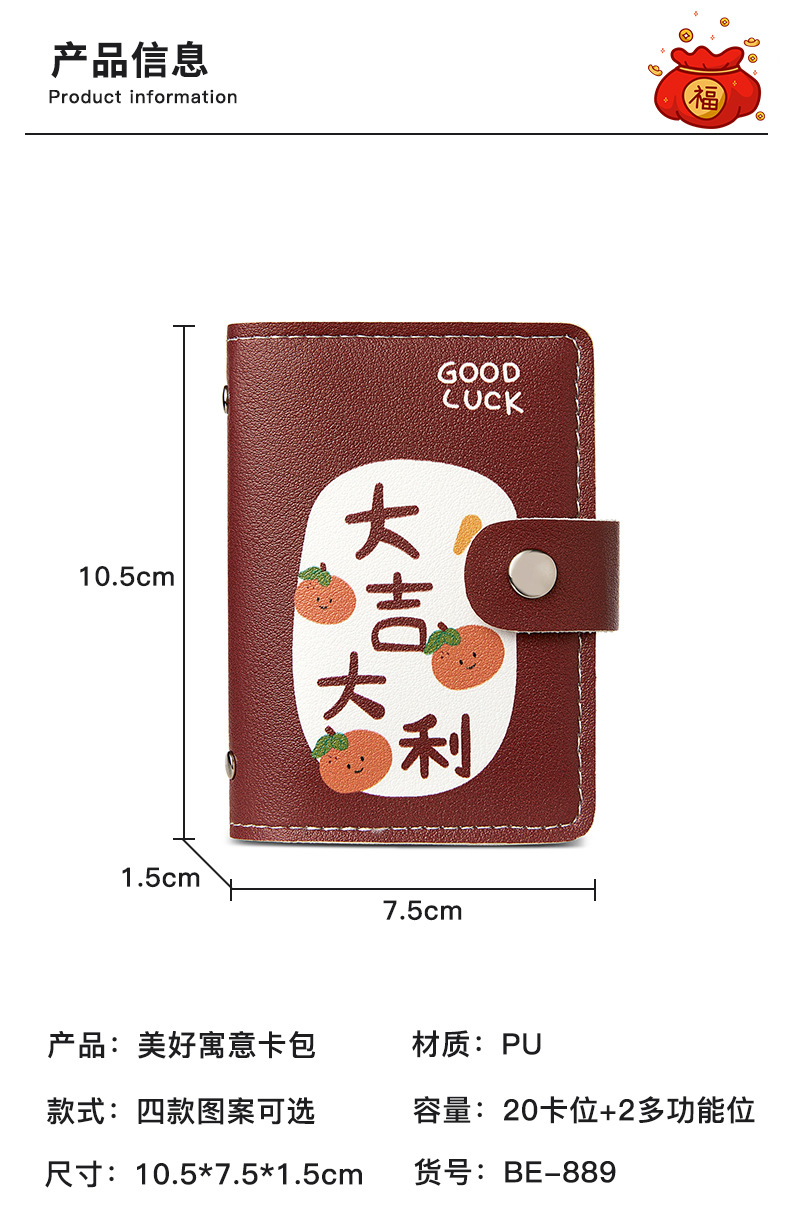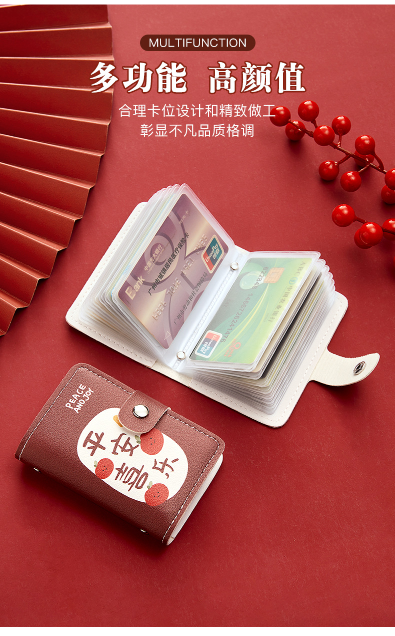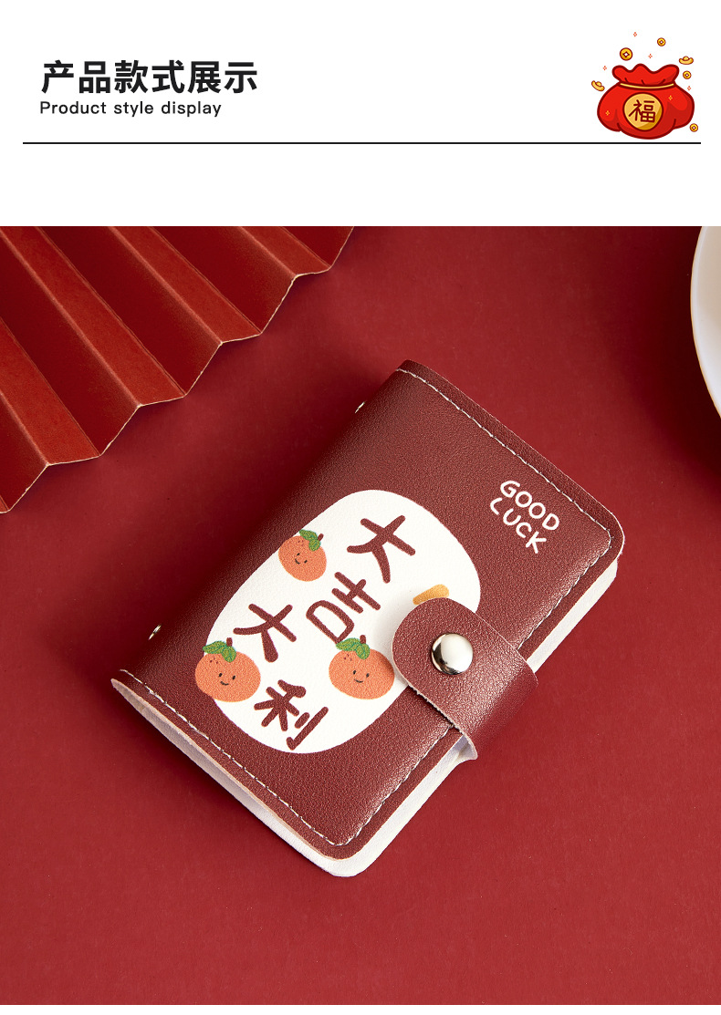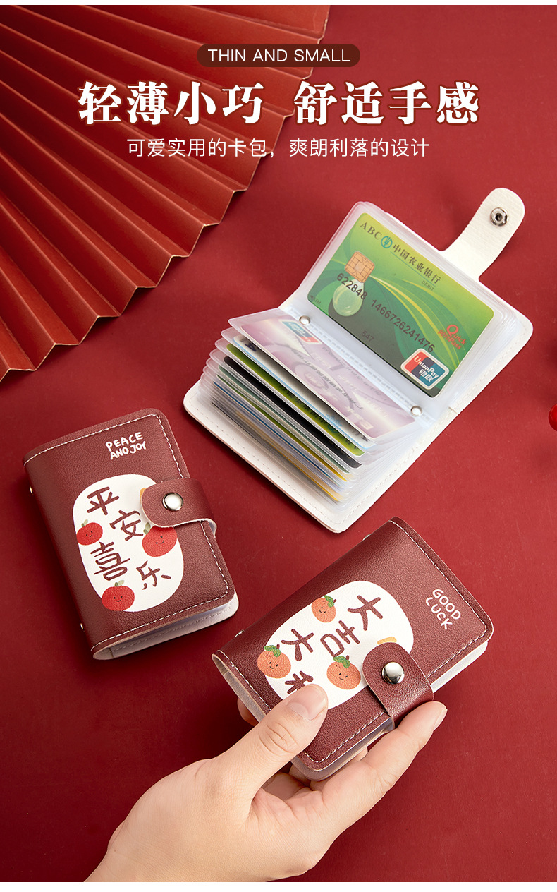 Bonita bolsa de tarjetas de dibujos animados de buena suerte personalidad femenina gran capacidad multi-tarjeta super delgada anti-damagnetizante tarjeta compacta bolsa de tarjetas