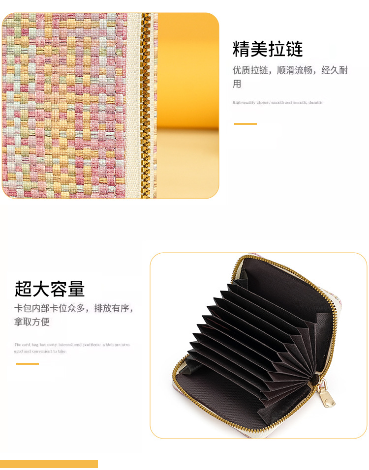 Nueva bolsa de tarjetas de tejido para mujeres de moda europea y americana portaje de tarjetas de órgano bolso de cambio multi-tarjeta de tarjetas de gran capacidad tarjeta de crédito