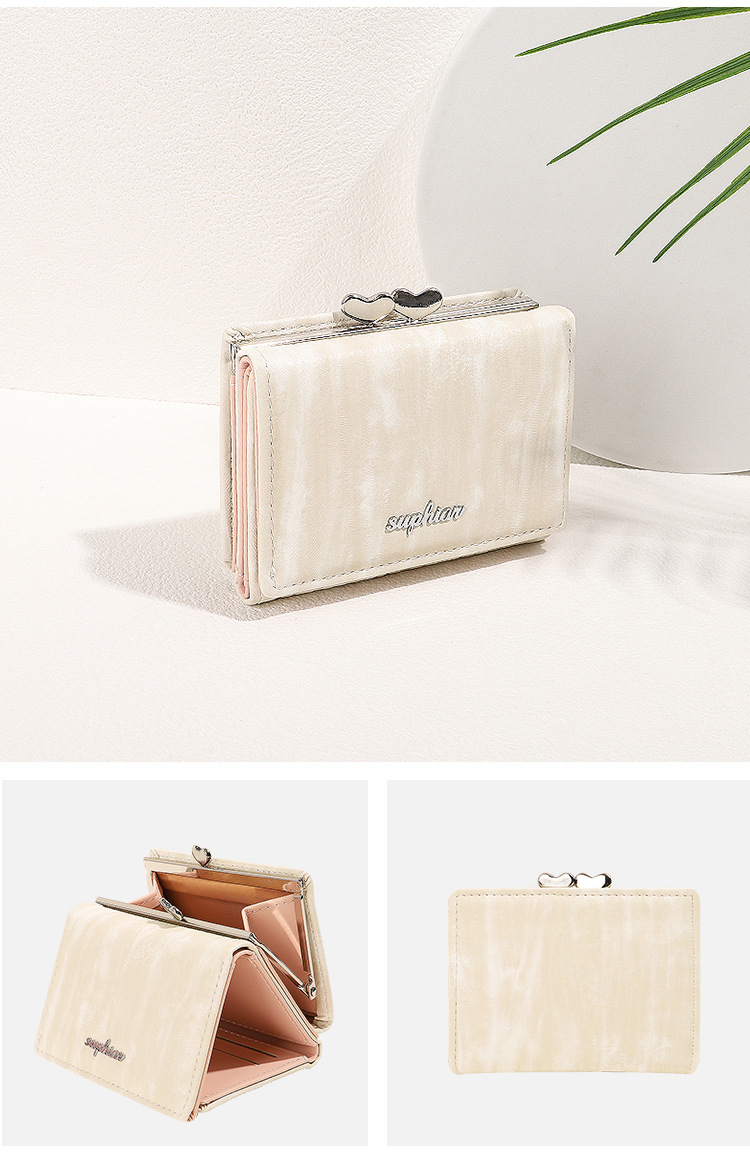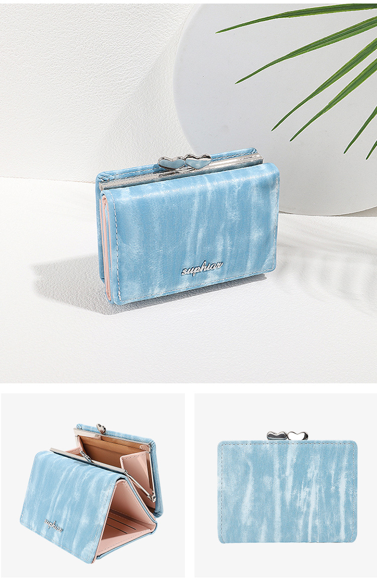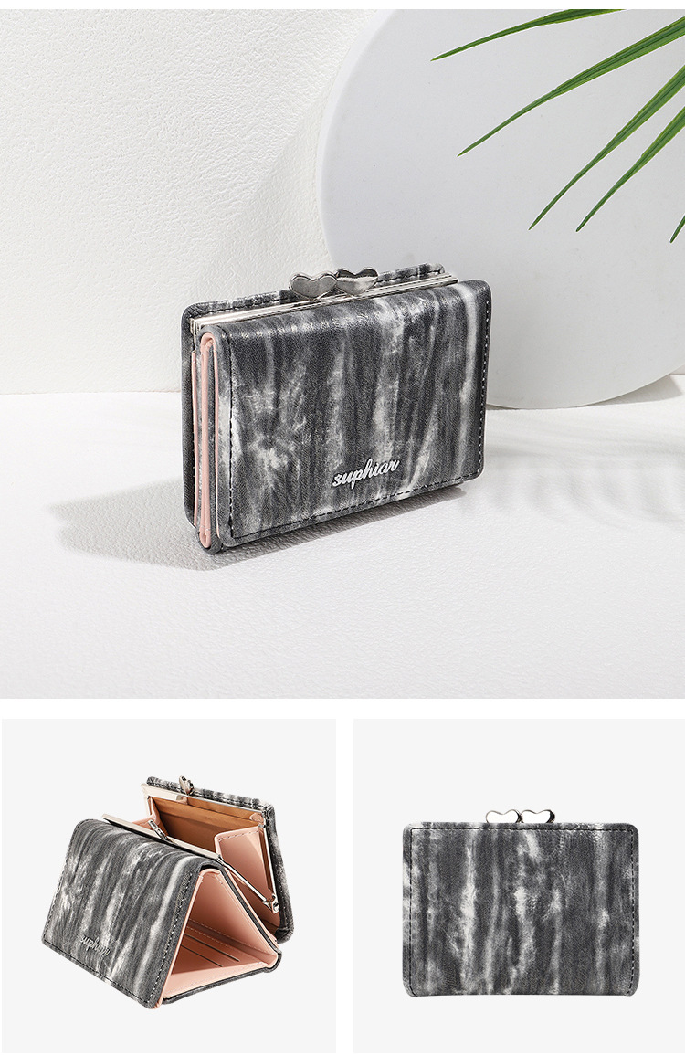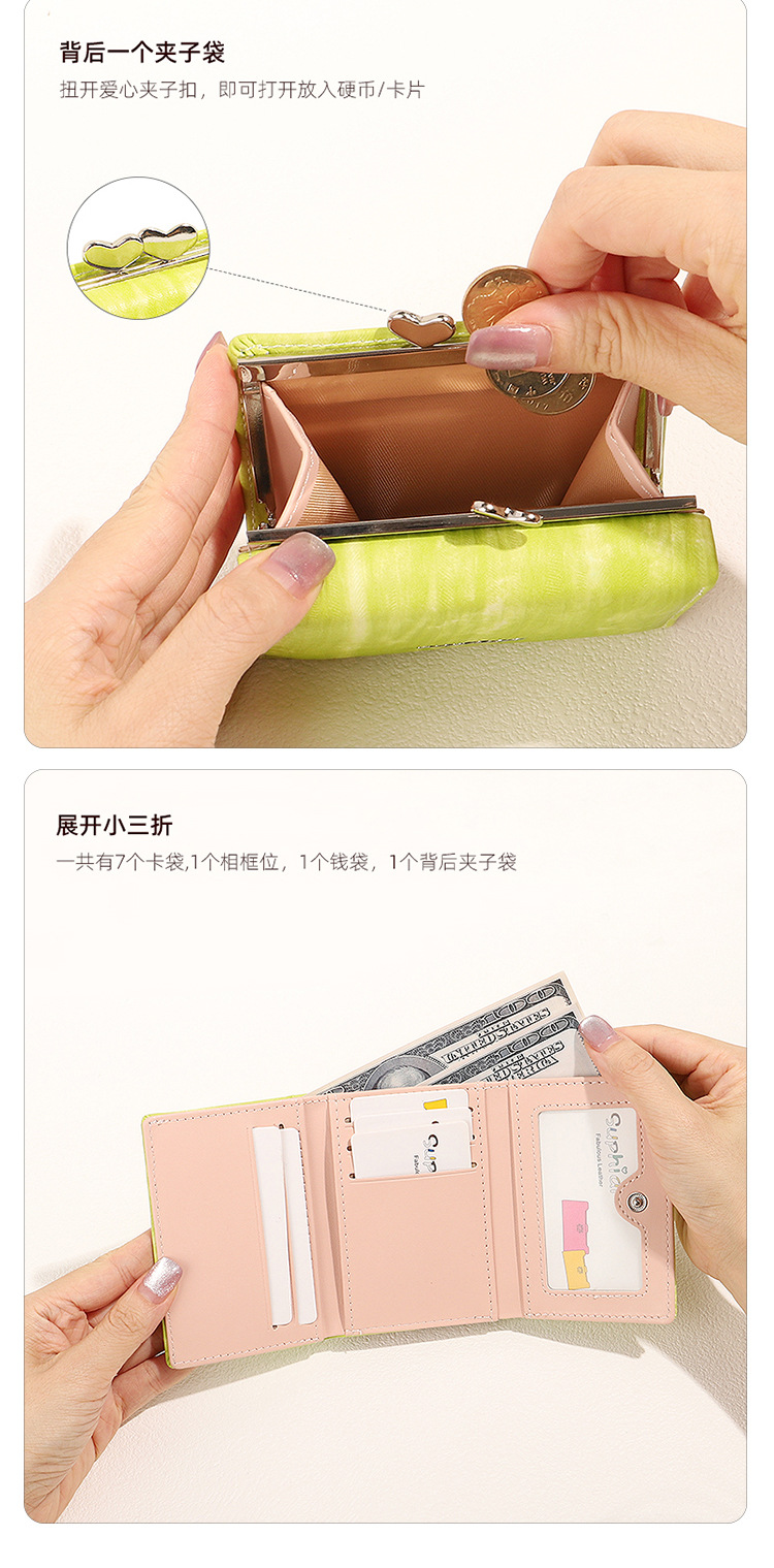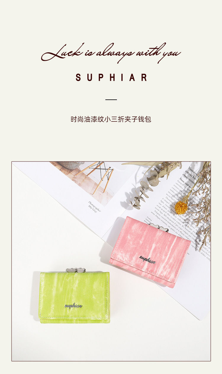 Cartera corta SUPHIAR, cartera delgada a rayas, triple pliegue, con cremallera, para monedas, tarjetas, cambio, impermeable, estilo fresco y dulce